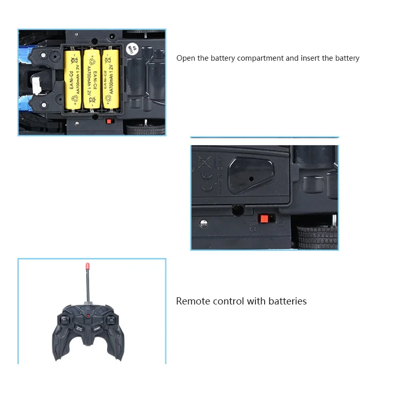 - Power Sources: The remote controller requires 2 x AA batteries (not included). The toy operates on 1 rechargeable battery (included).