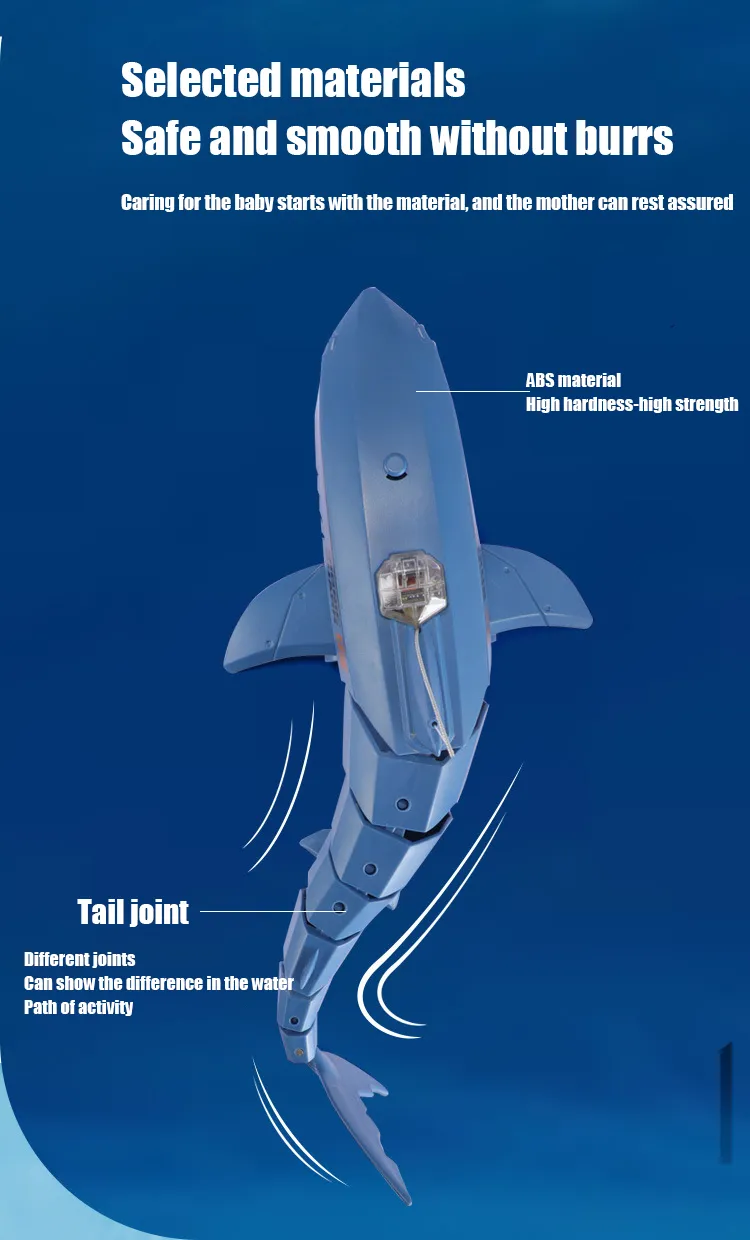 - Movable Joints: Designed to imitate a real shark, this toy moves forward by swaying its fins left and right, mimicking the swimming motion of a shark.