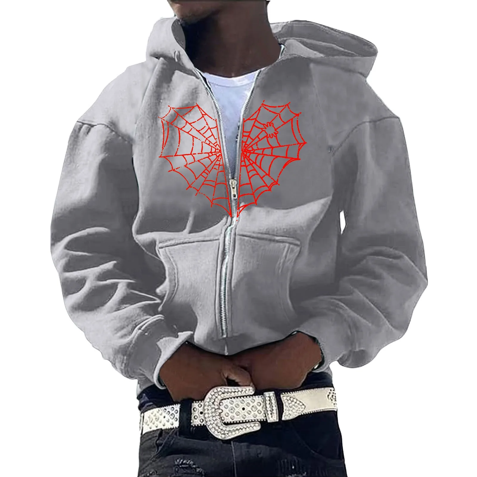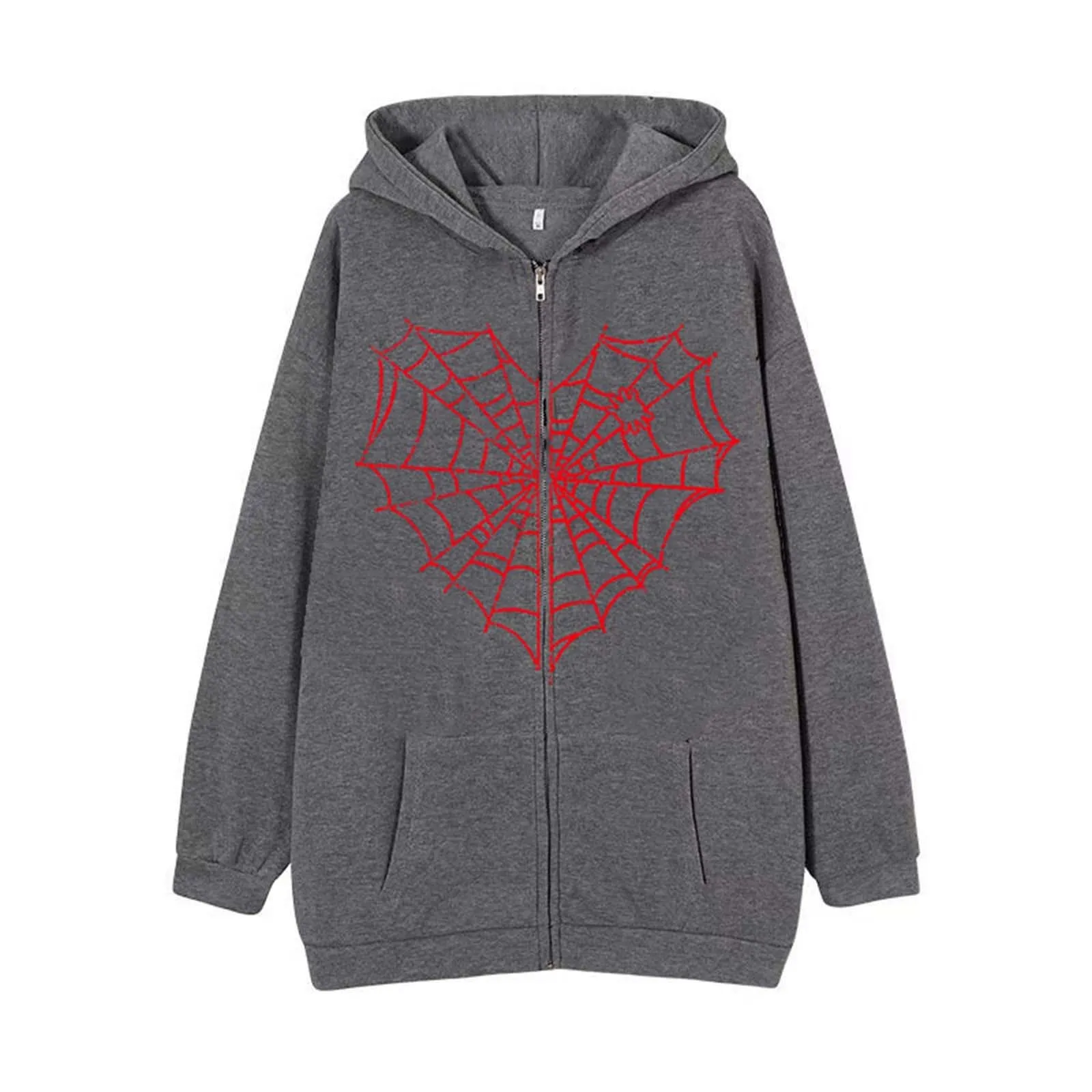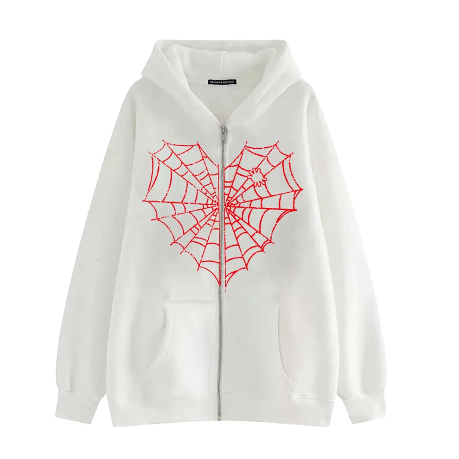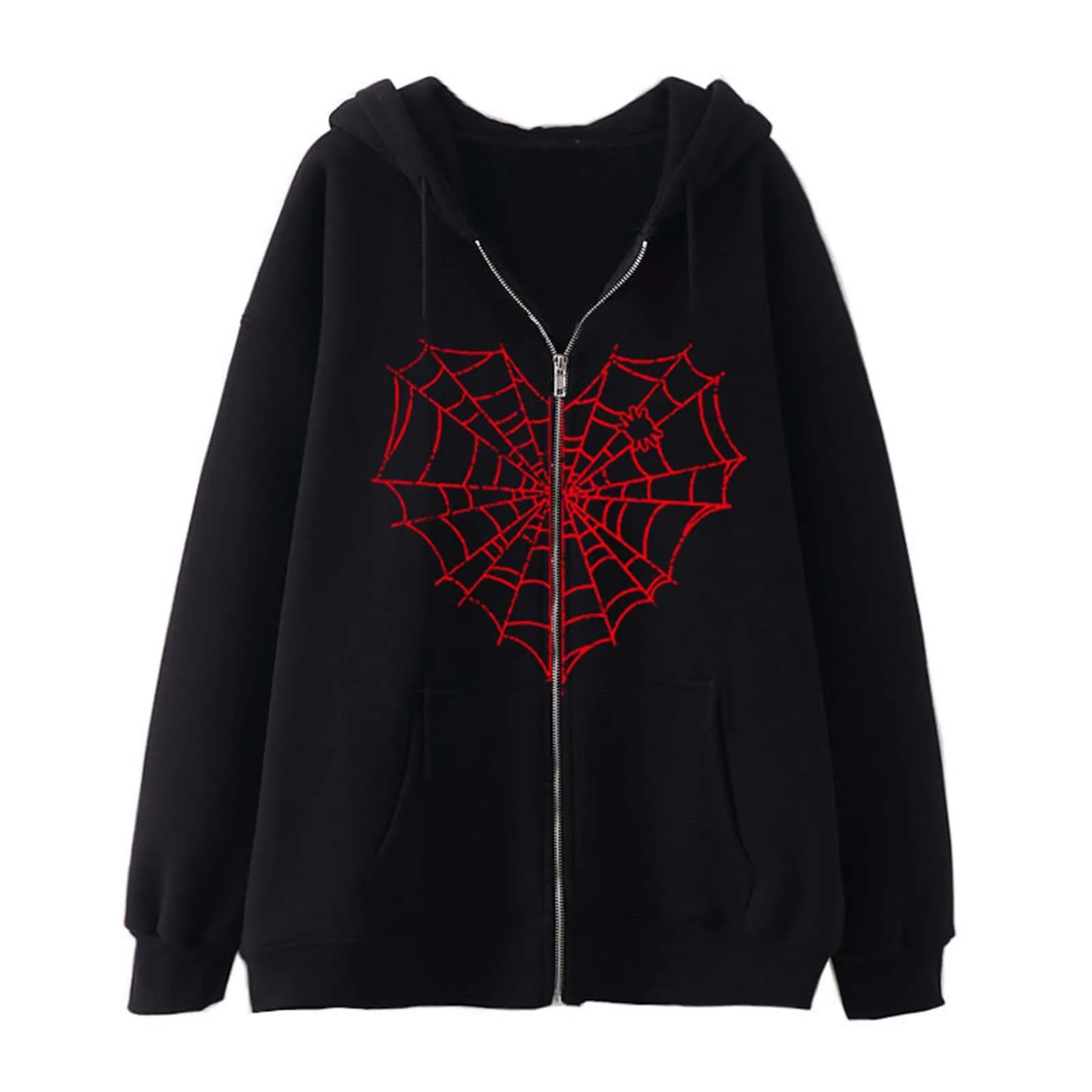 Red Cobweb Zip Hoodie Y2K Casual Autumn Jacket