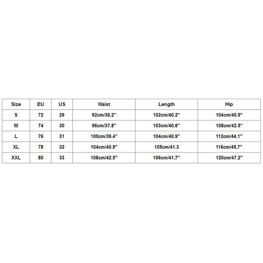 - Size XXL: EU 80, US 33, Waist 108 cm (42.5″), Length 106 cm (41.7″), Hip 120 cm (47.2″)