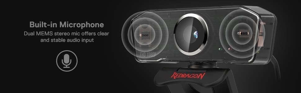 Redragon GW800 1080P Webcam with Dual Microphone & 360 Rotation