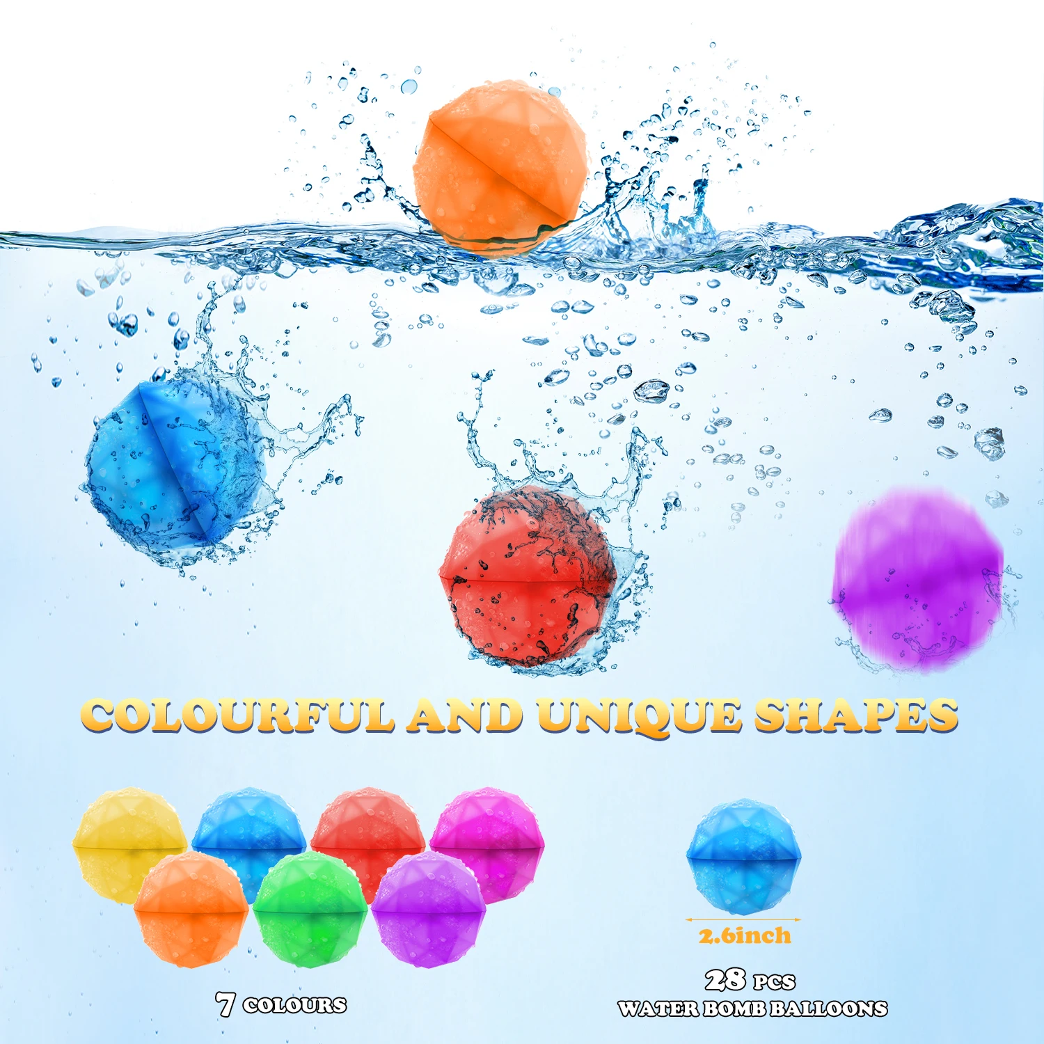 Colorful Diamond-Shaped Water Balls – Offered in 18 or 28-piece sets. Bright, fun, and reusable, perfect for summer parties.
