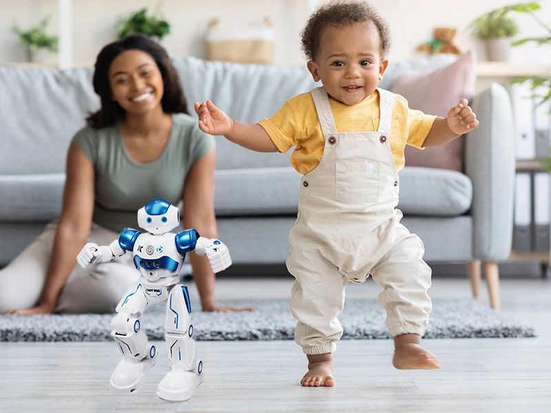 Sing and Dance: The robot has bright LED eyes and can walk, slide, sing, and dance. The dynamic music and movement bring extra fun to children.