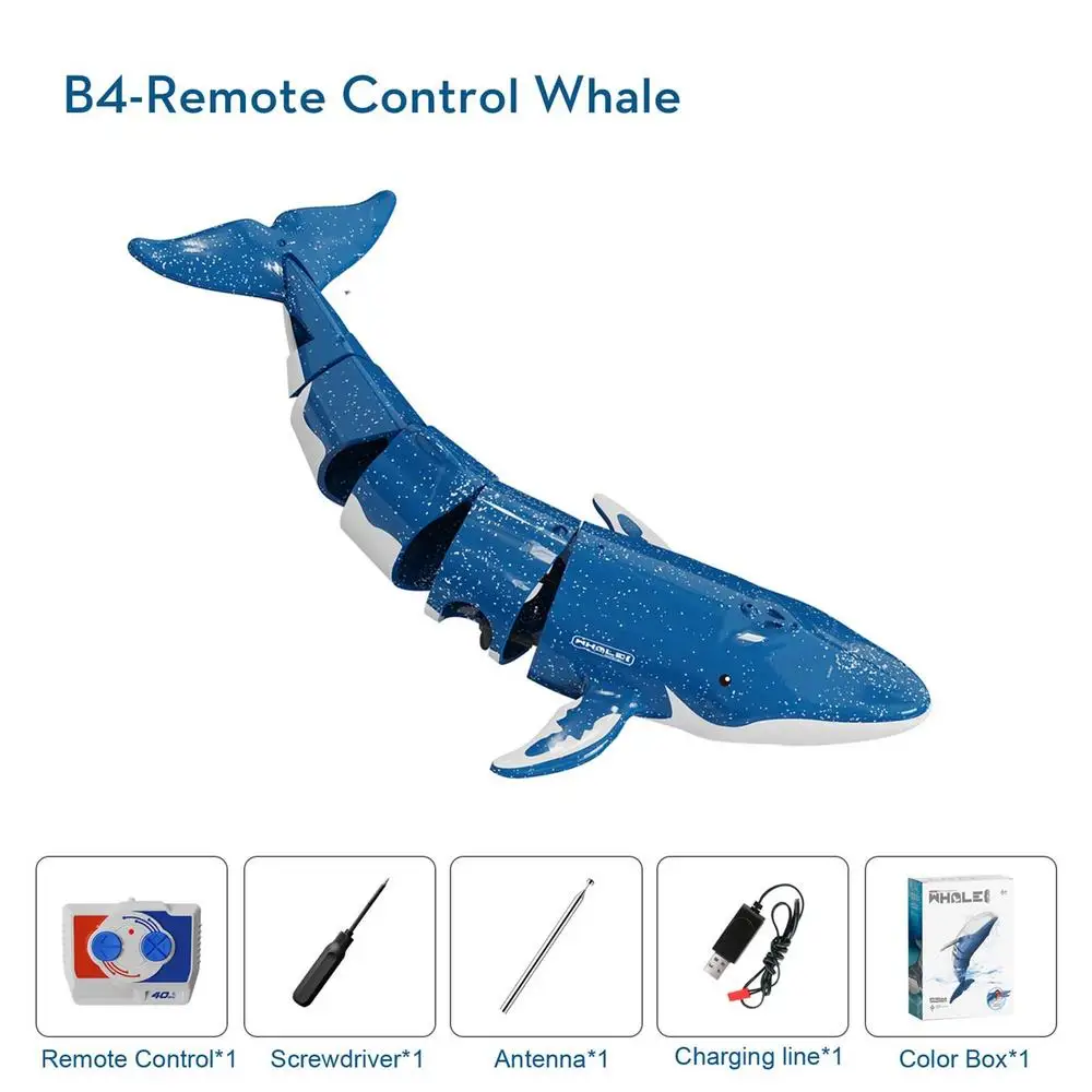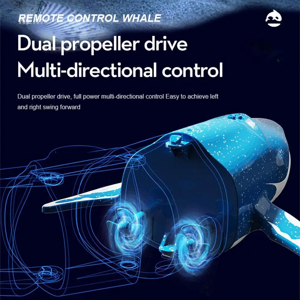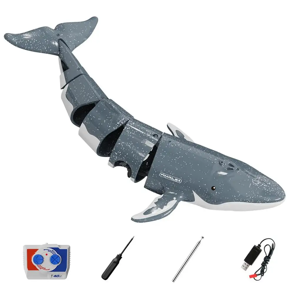 - Functional Features: Capable of diving, moving forward, turning left, turning right, surfacing, and spraying water like a real whale. It also features advanced waterproofing and power failure simulation.