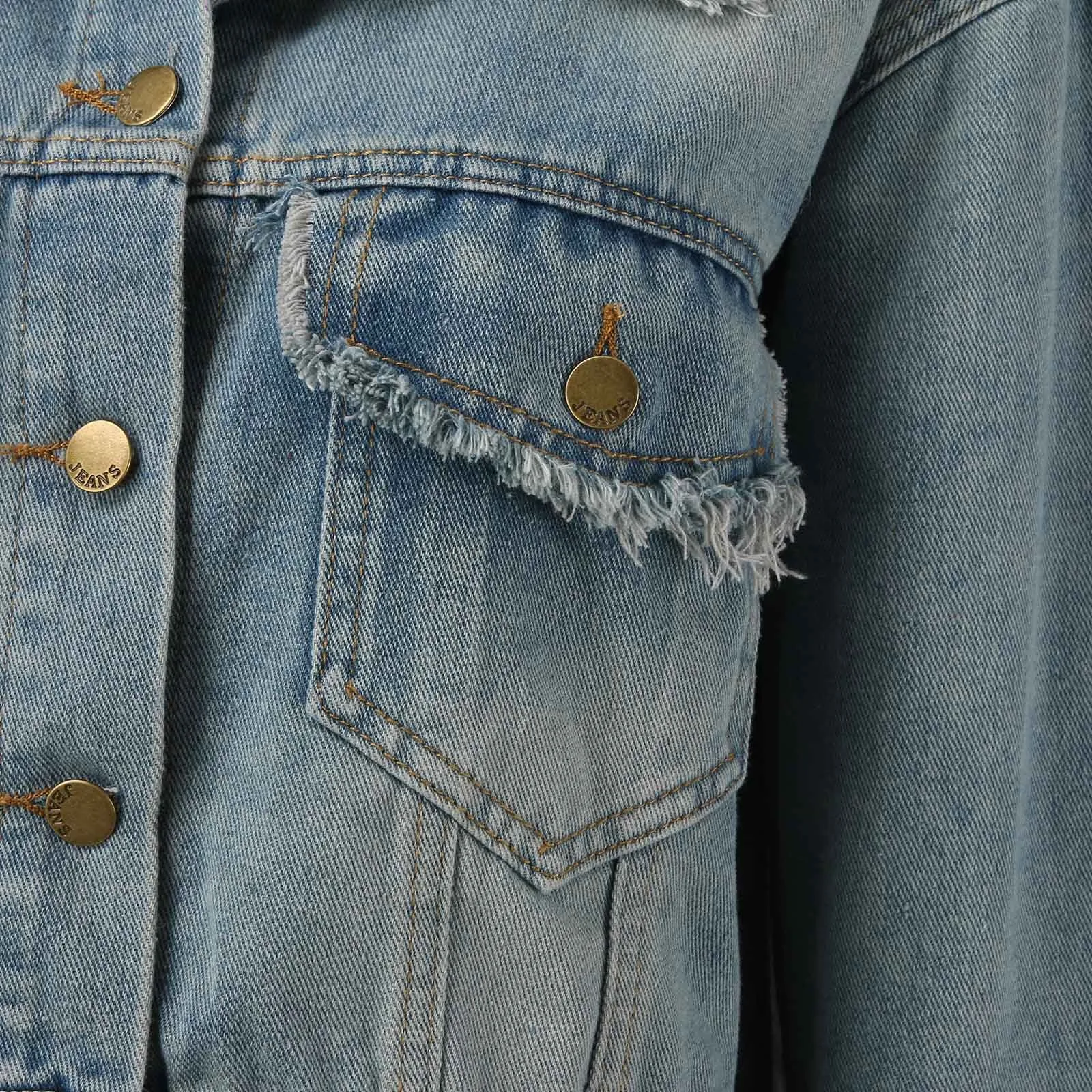 American Style Denim Jacket: This short denim jacket for women features an American-style edge.