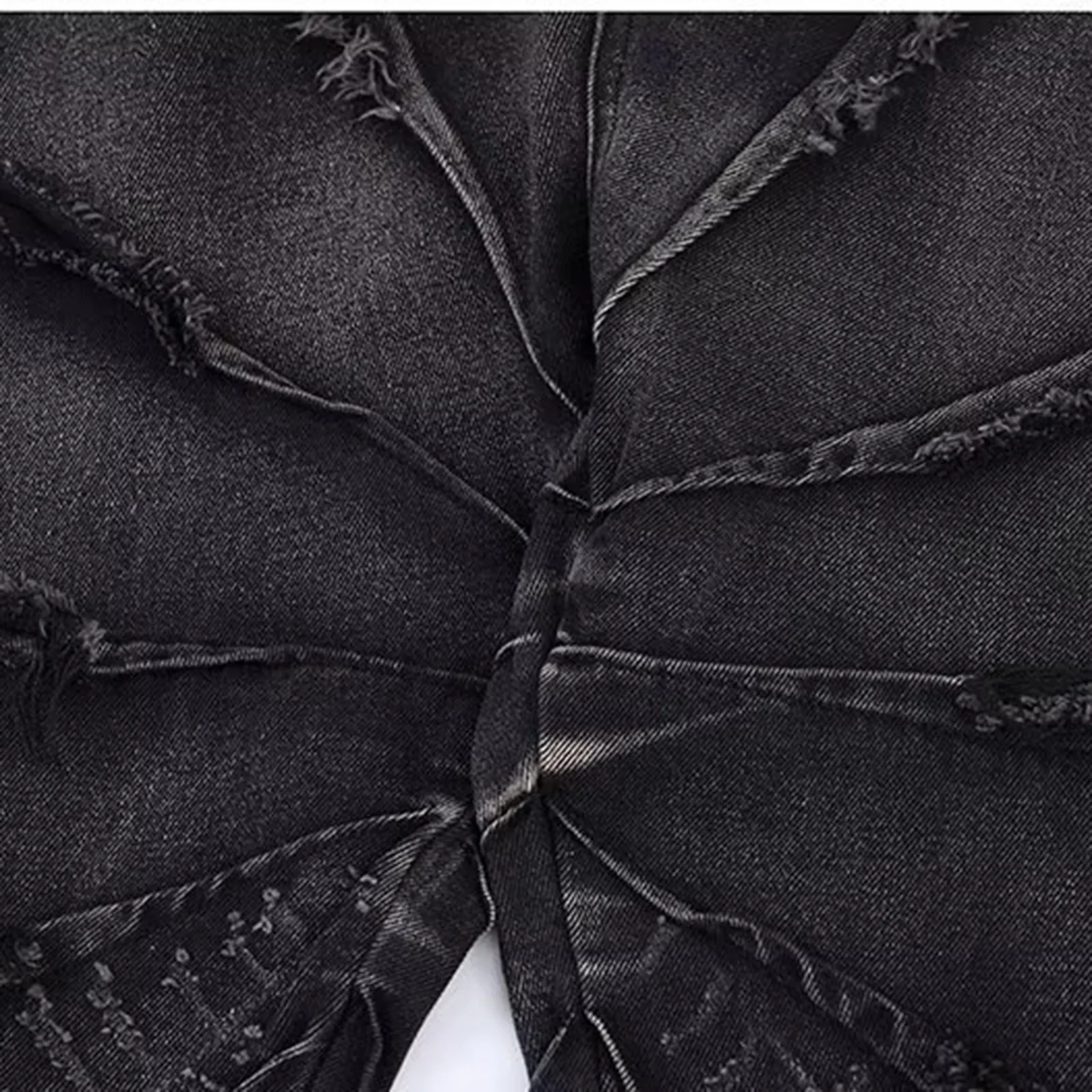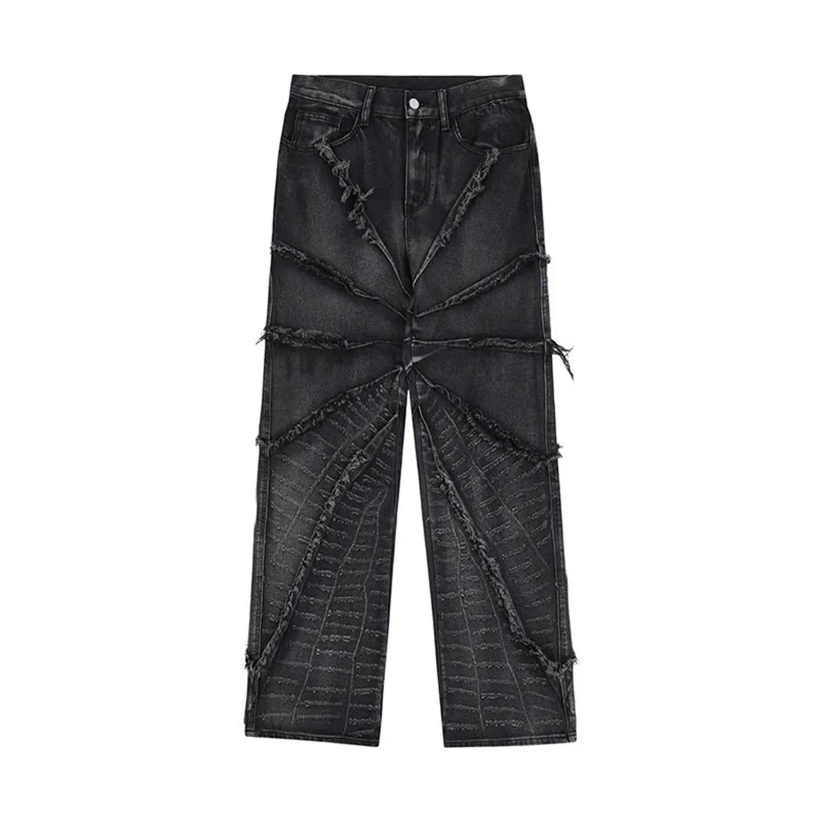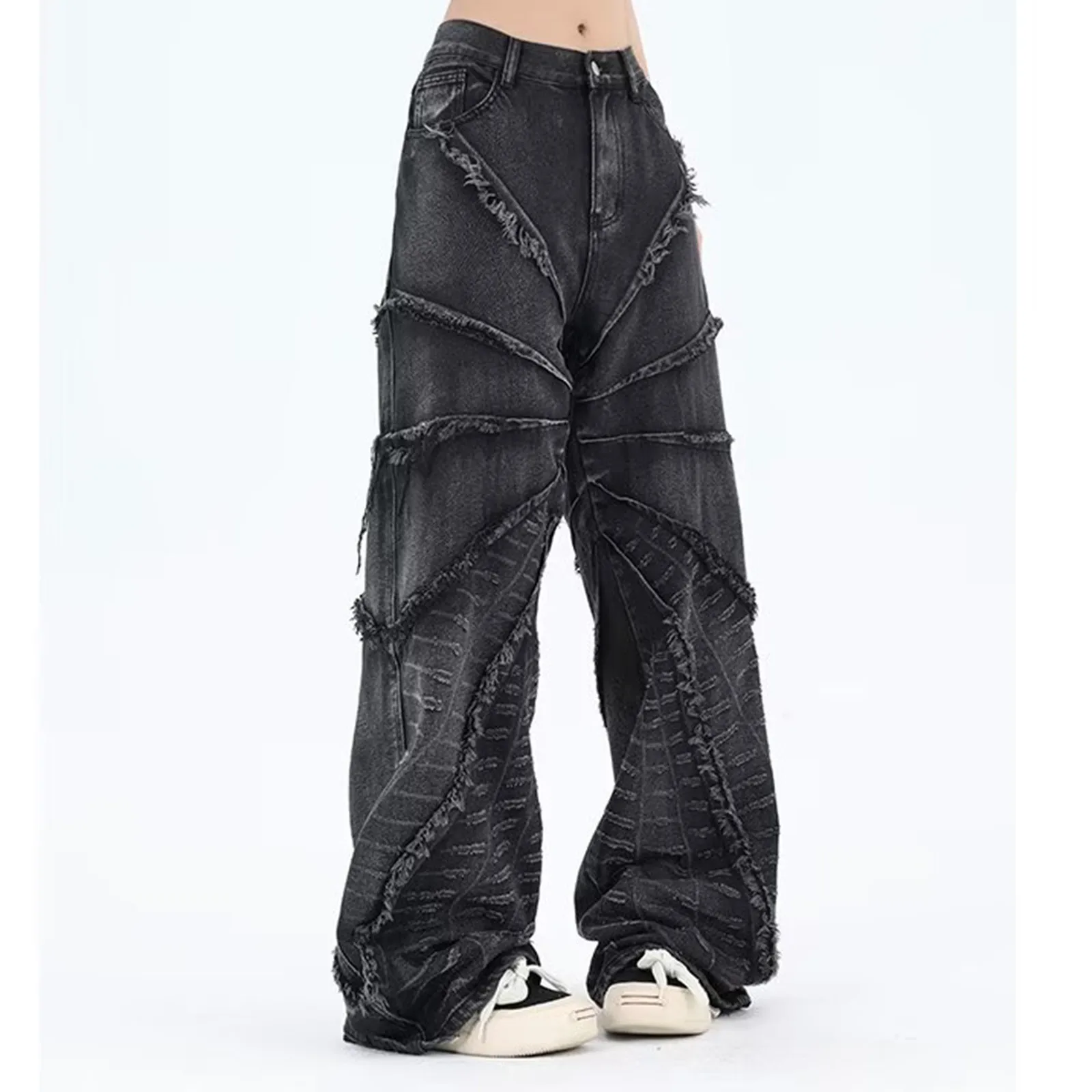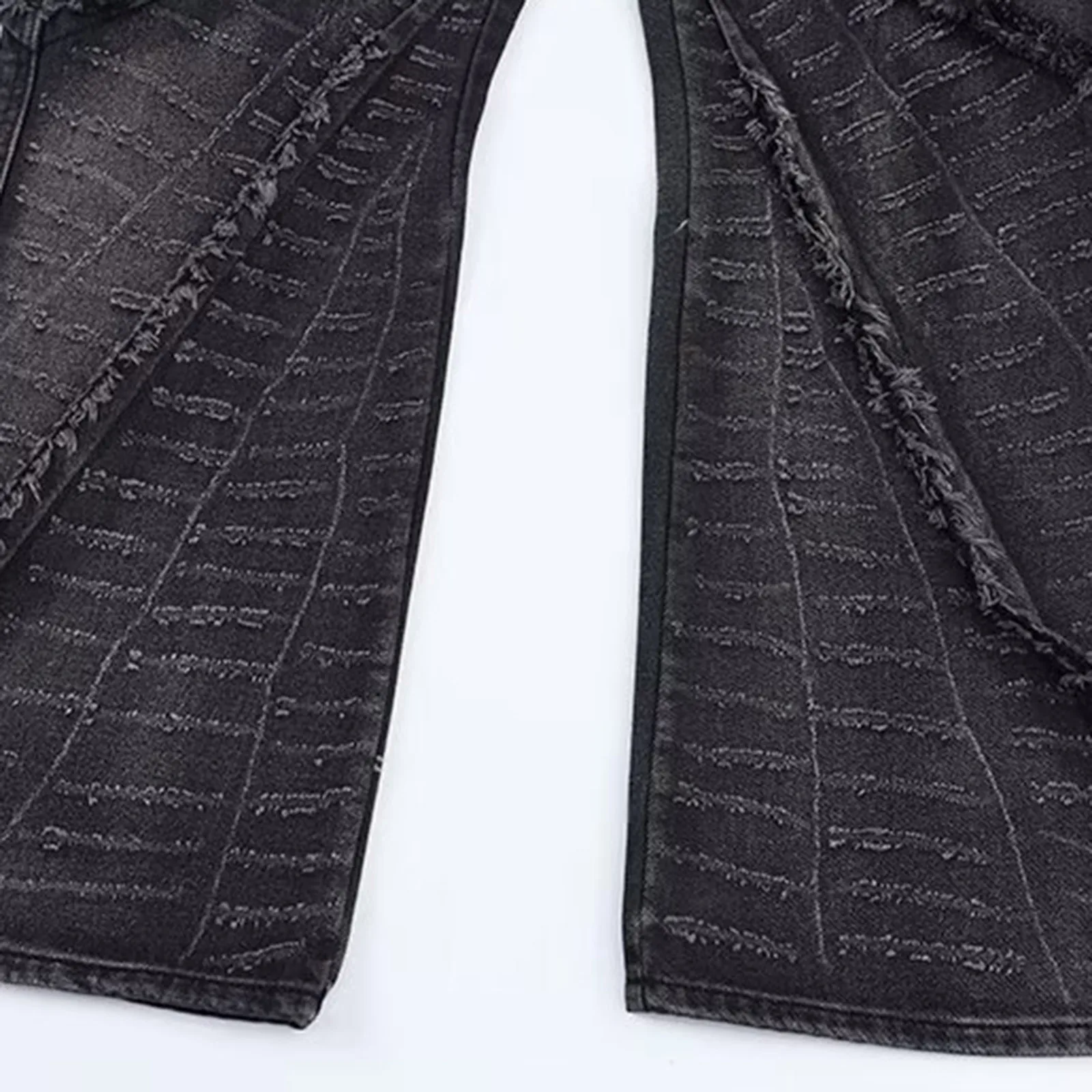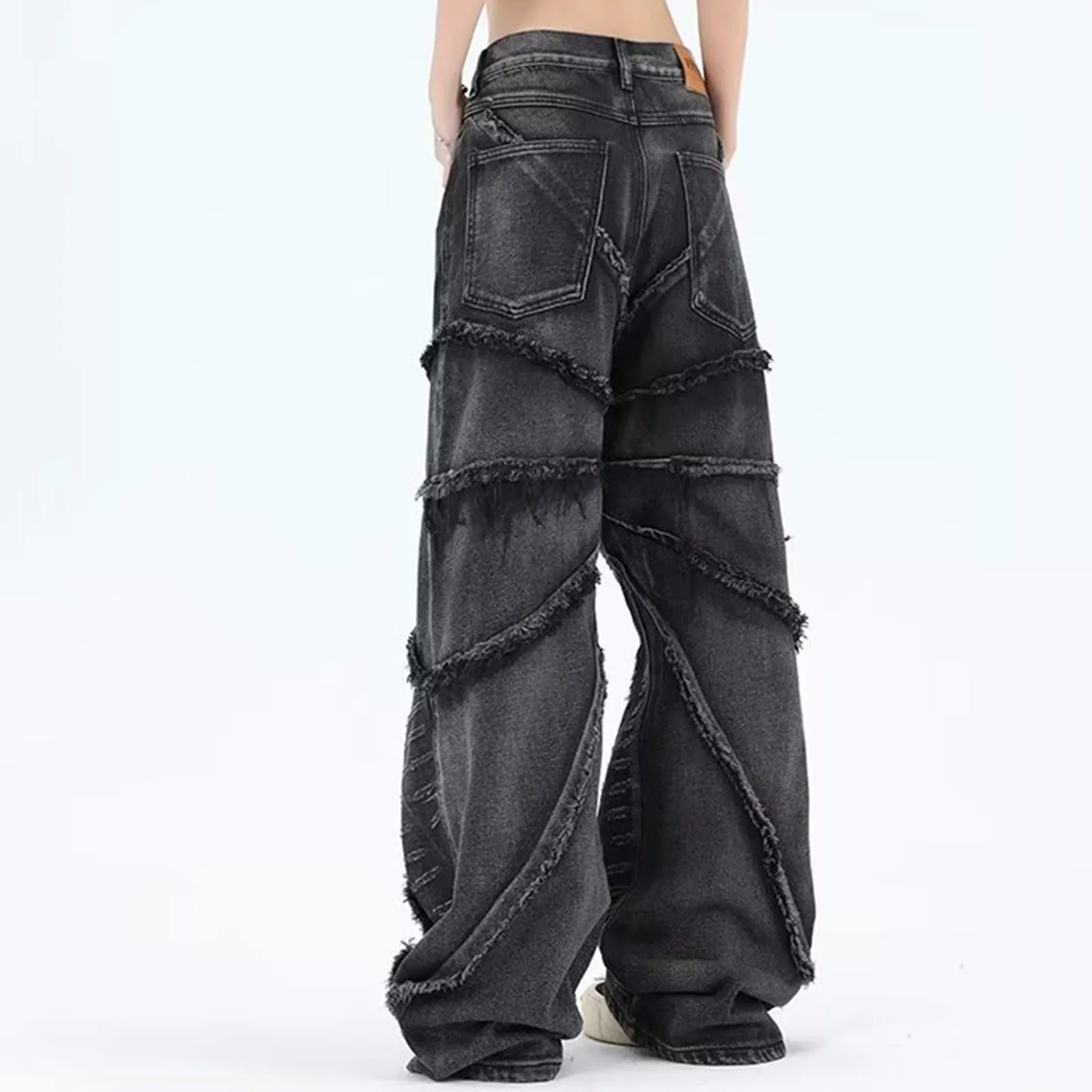 Men’s and Women’s Retro Destructive Hem Baggy Fashion Personality Solid Color Long Jeans