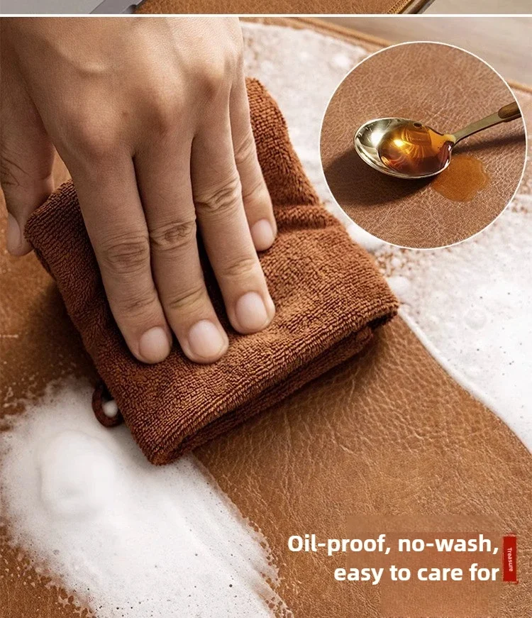 Maintenance is simple—wipe spills, oil, or dust with a damp cloth. The surface resists stains and aging to keep your desk looking sharp.