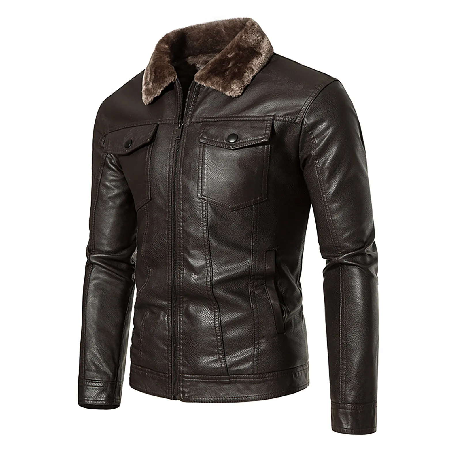 Retro Leather Collar Jacket – Slim Fit Biker Coat