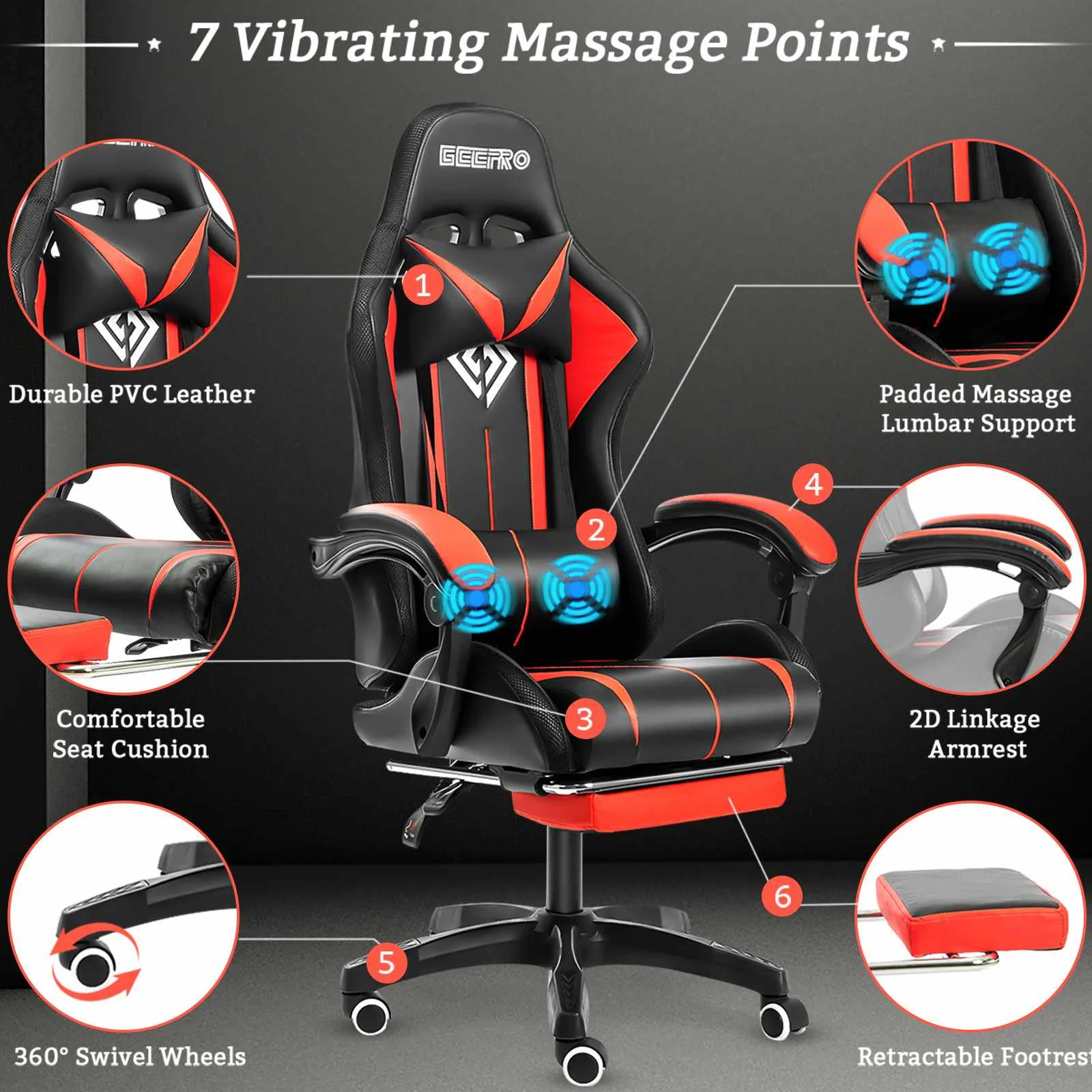 RGB Gaming Chair: Ergonomic, Massage, Swivel