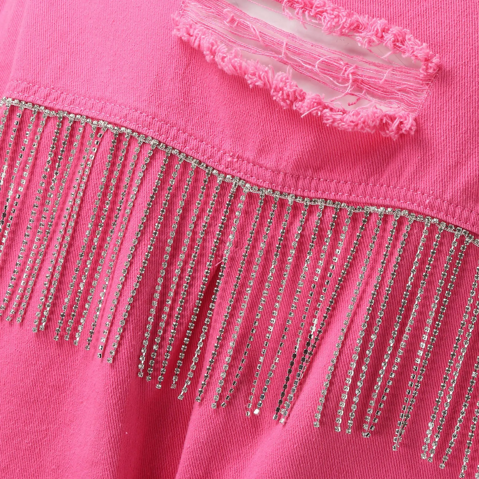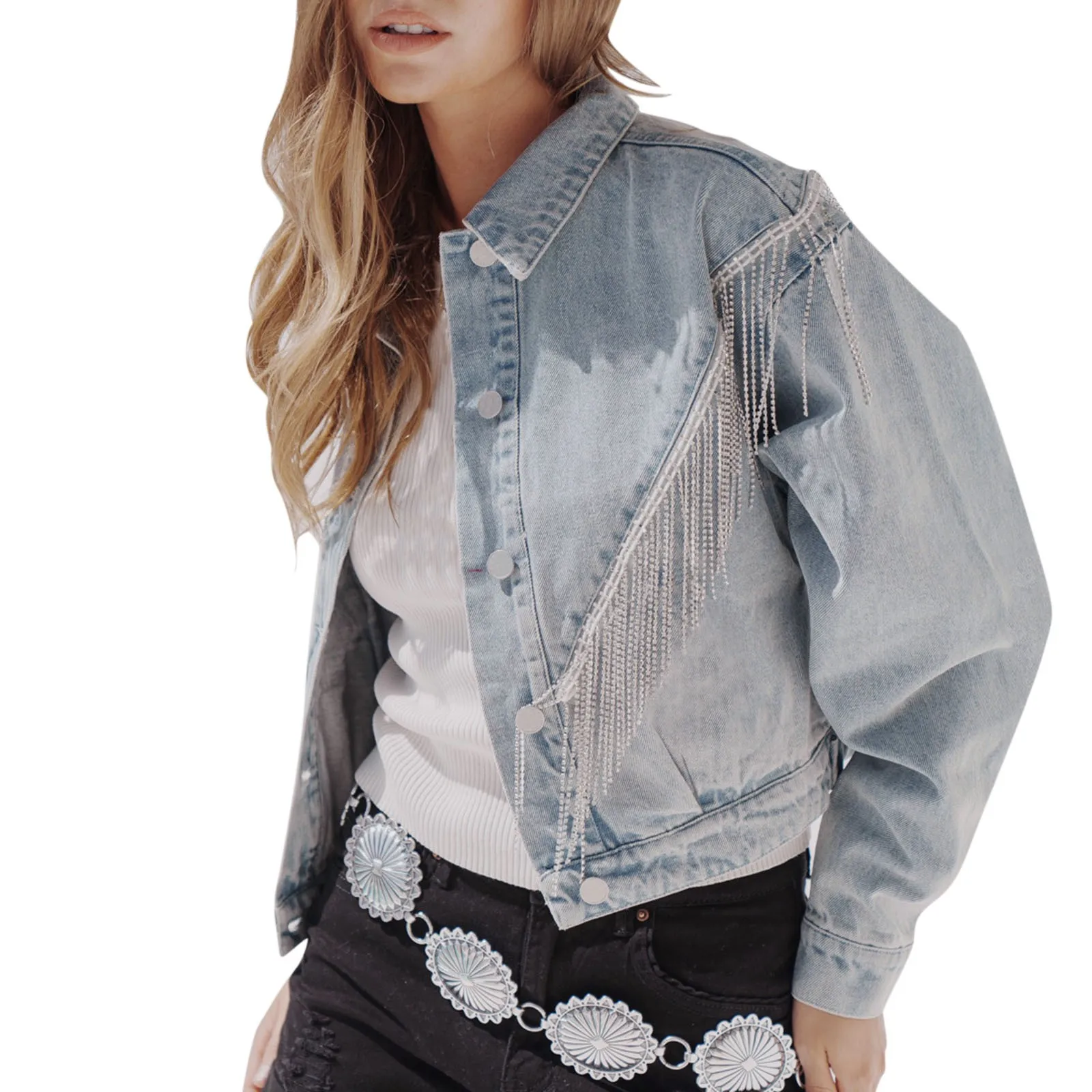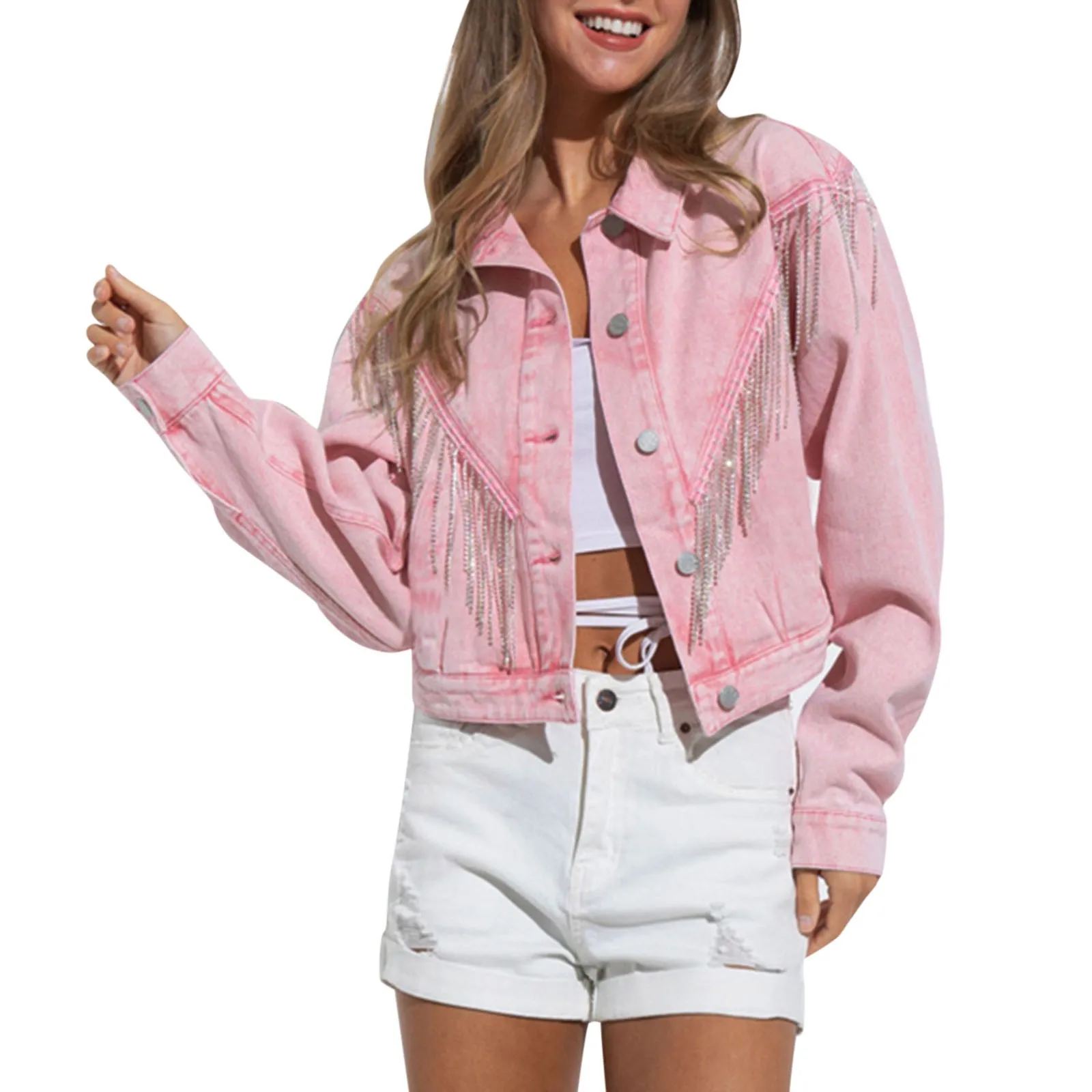- Pattern Type: The garment is adorned with a solid pattern, complemented by a rhinestone tassel decoration, enhancing its visual appeal.