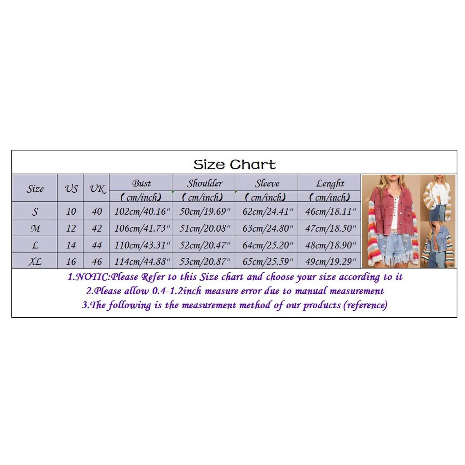- Size L: US 10, EU 40. Bust: 104 cm (40.94 inches), Shoulder: 55 cm (21.65 inches), Sleeve: 48 cm (18.90 inches), Back Length: 44 cm (17.32 inches).