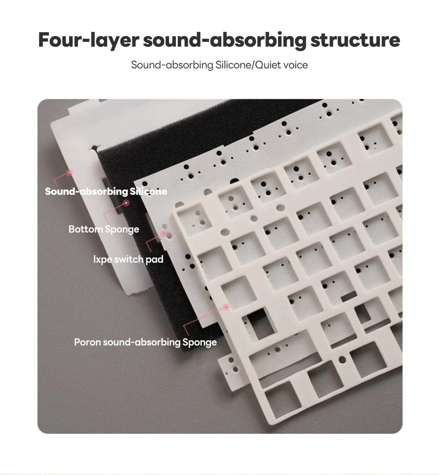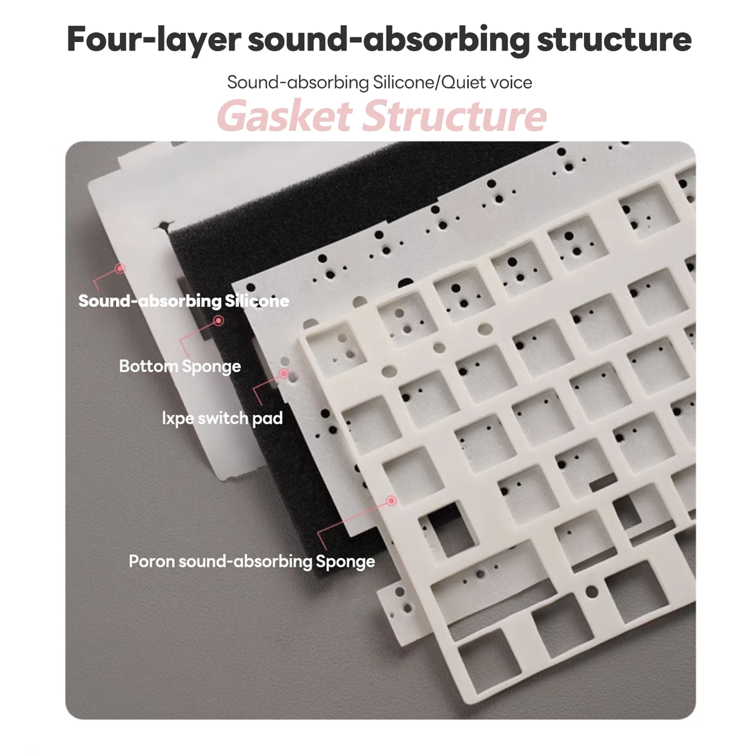 - Gasket structure – Higher-end structure with pure sound and soft feel for enjoyable typing.