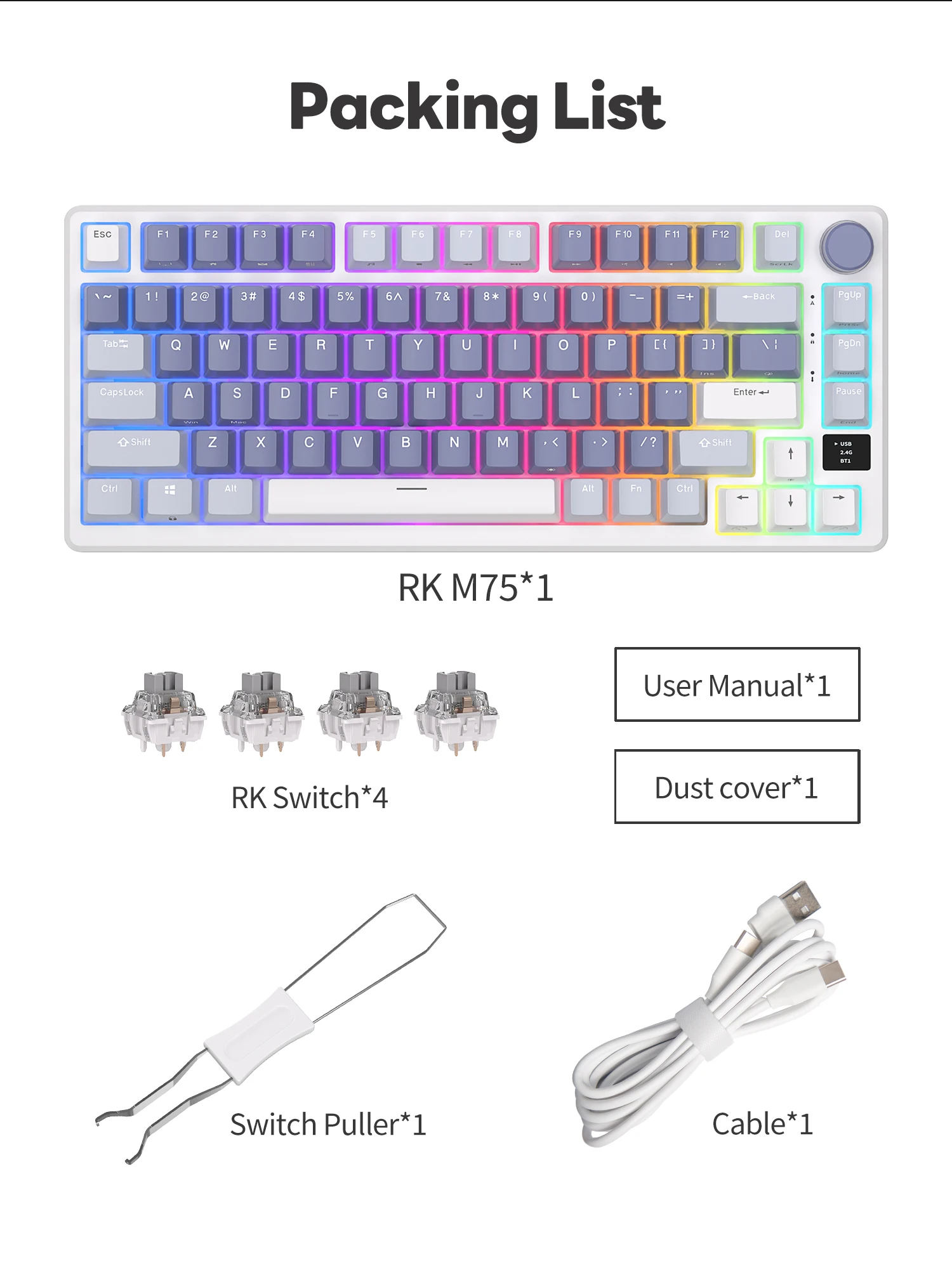 - 1 × RK M75 Mechanical Keyboard