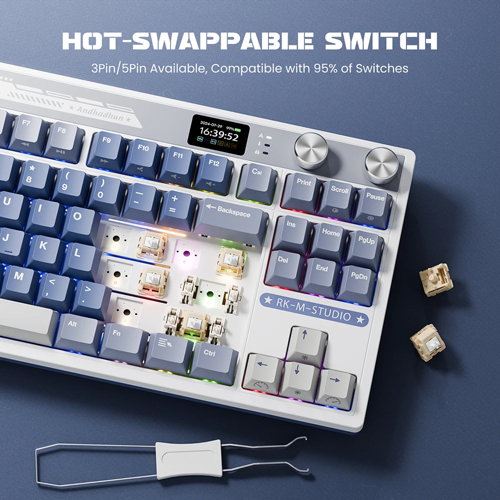- Hot-Swappable: High-quality PCB supports 3/5-pin hot-swappable switches. The linear fast silver switch improves accuracy and initial force, prevents mis-touches, triggers faster, and offers strong stability for long gaming sessions.