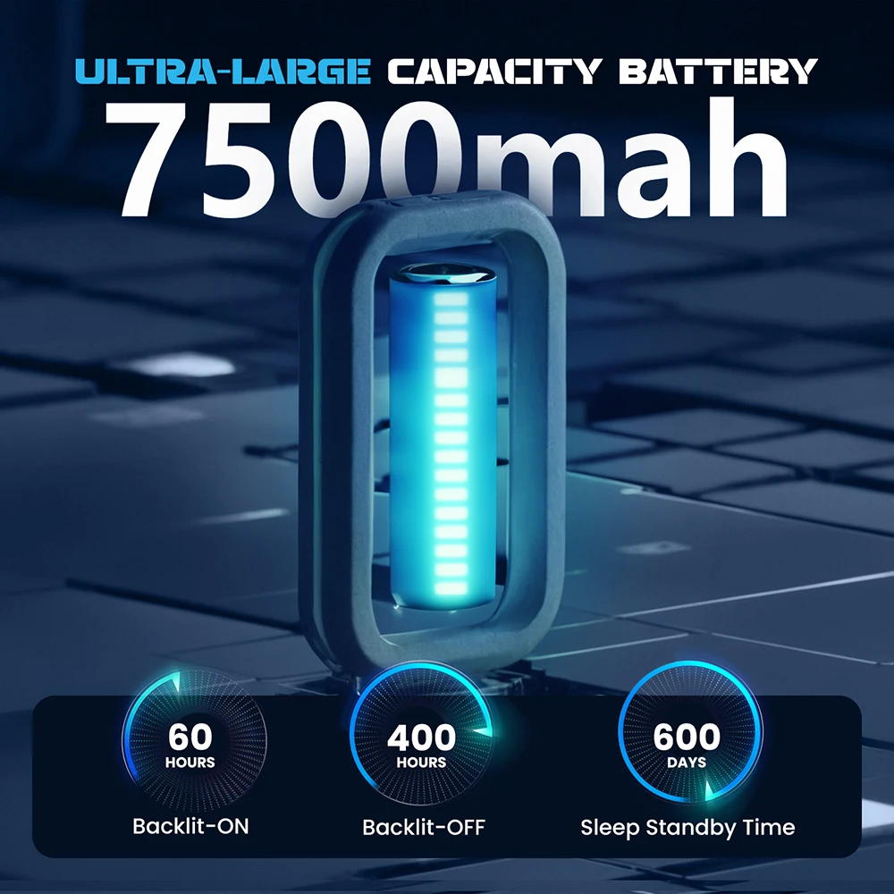 - 7,500 mAh Battery: Up to ~400 hours of work with backlight off (about 16 days) and up to ~600 days on standby—less charging, more using.
