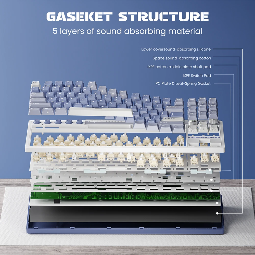 - Gasket Structure: Higher-level structure for a purer sound and softer feel to make typing pleasant and fun.