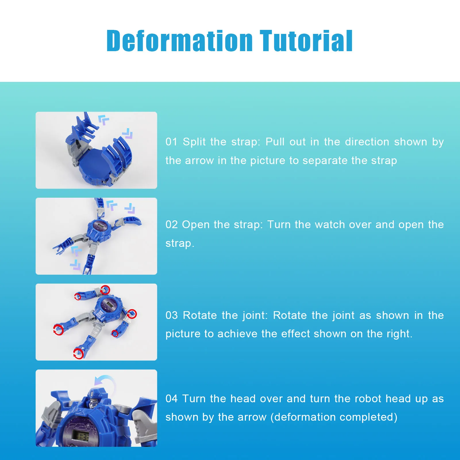 - The creative robot transforming kids watch is easy to operate.