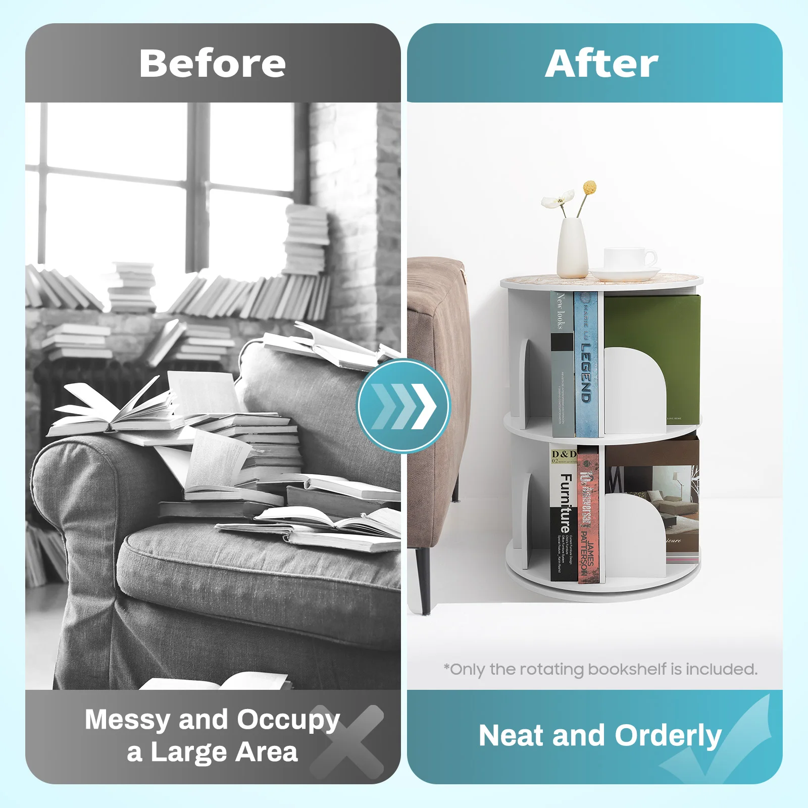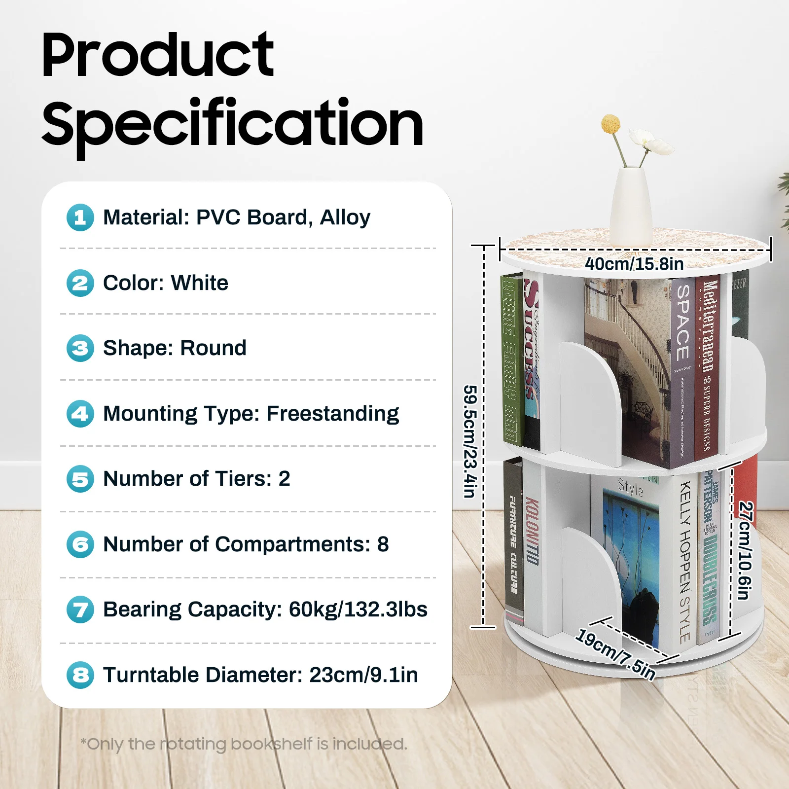 1* 2-Tier Rotating Bookshelf