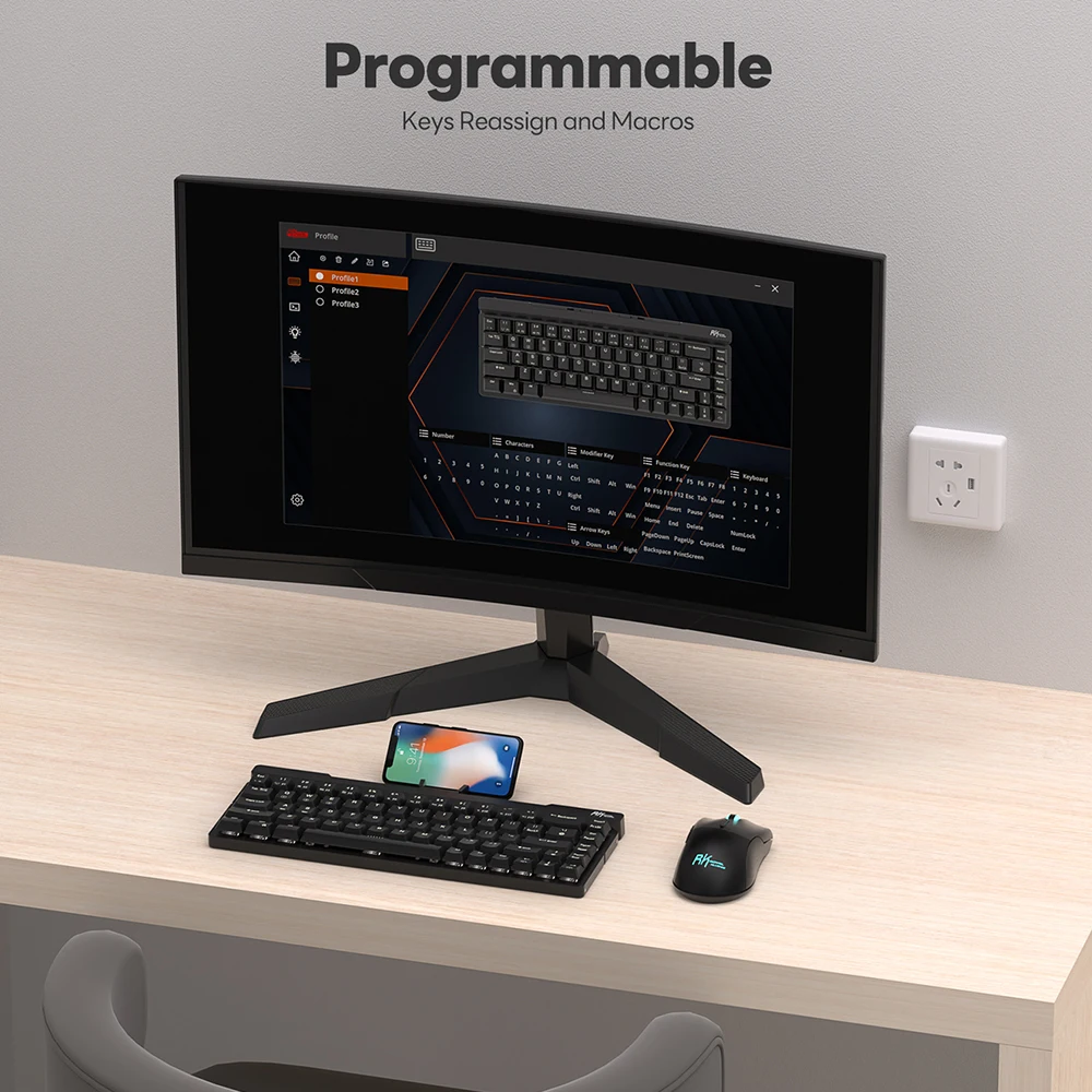 - 640 mAh battery: up to 200 hours with backlight off; fully charges in 2–3 hours. Compact 68-key layout provides a desktop-like typing experience.