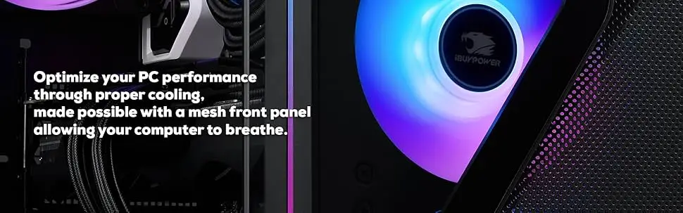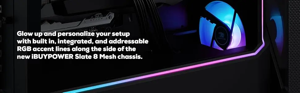 To keep the system cool and quiet under full load, the SMI7N5701 features a Tower Air Cooler, a performance air fan CPU cooler, and RGB fans inside a premium iBUYPOWER Slate MESH case.