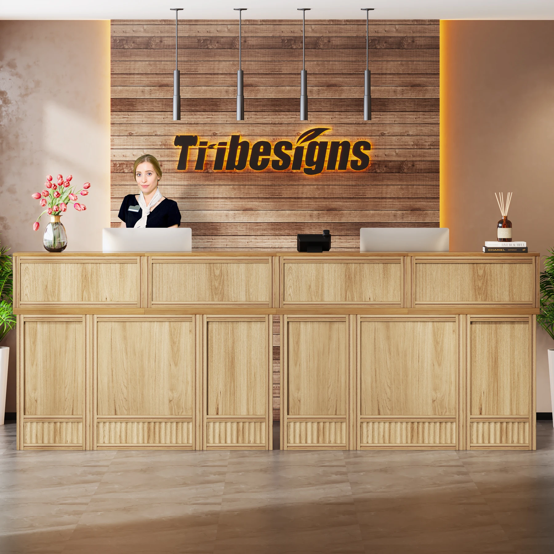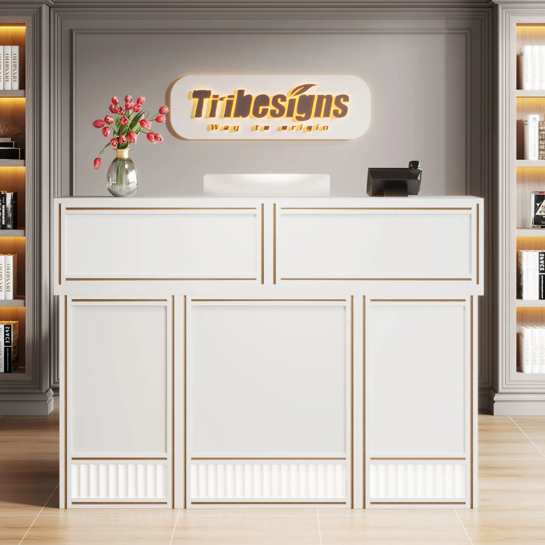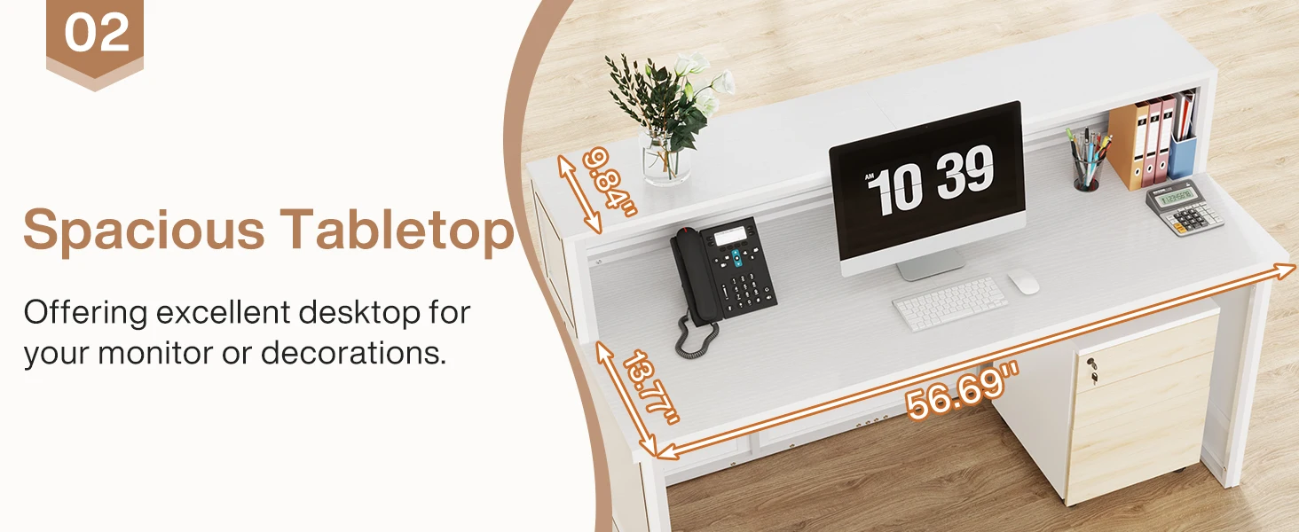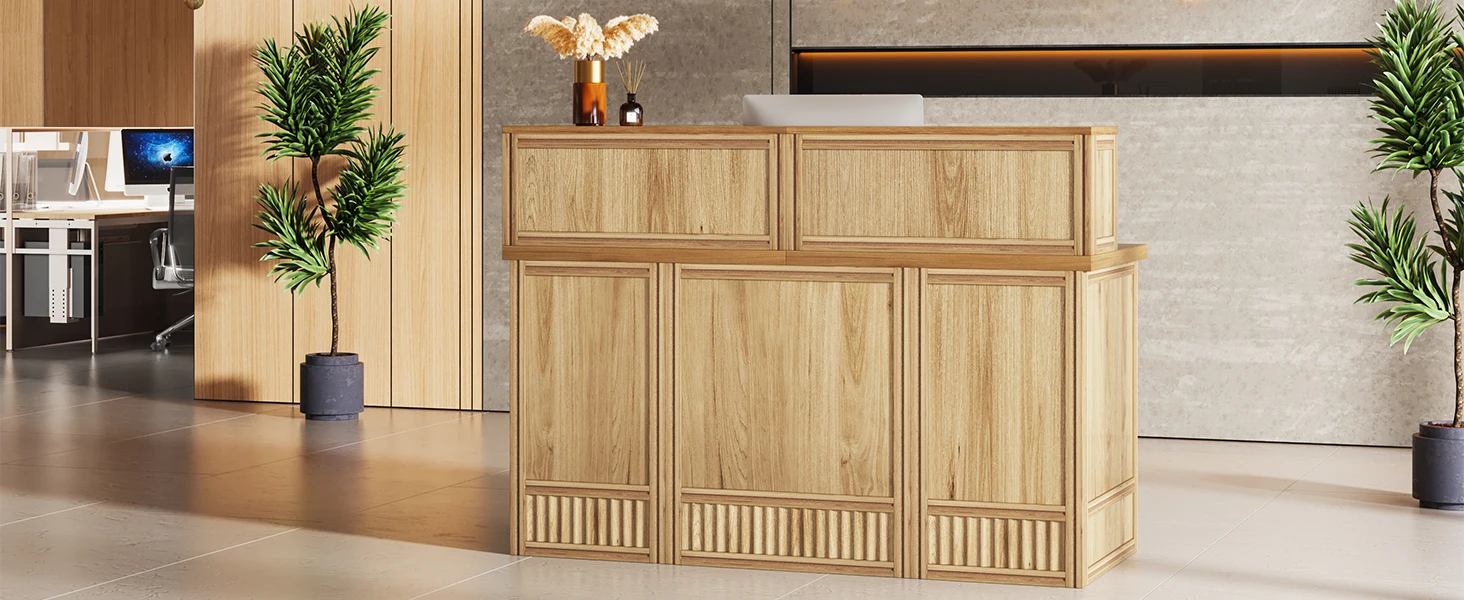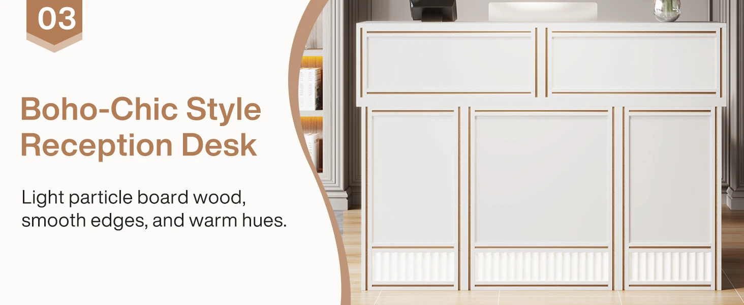 Versatile and Multi-Functional: Suitable for use as a company front desk, cash register counter, or salon front desk. It works well in offices, retail spaces, and beauty salon lobbies while helping create a professional and welcoming atmosphere.