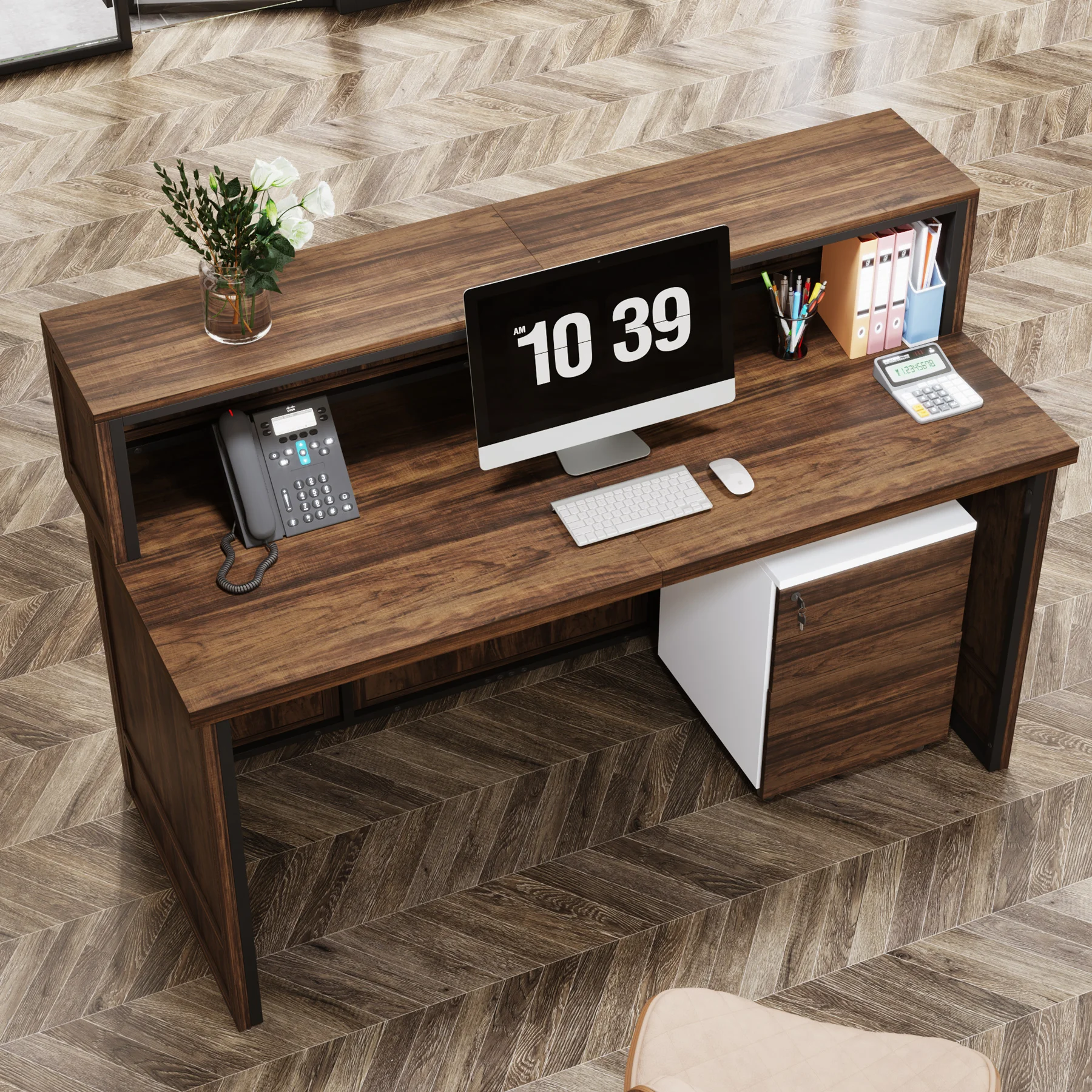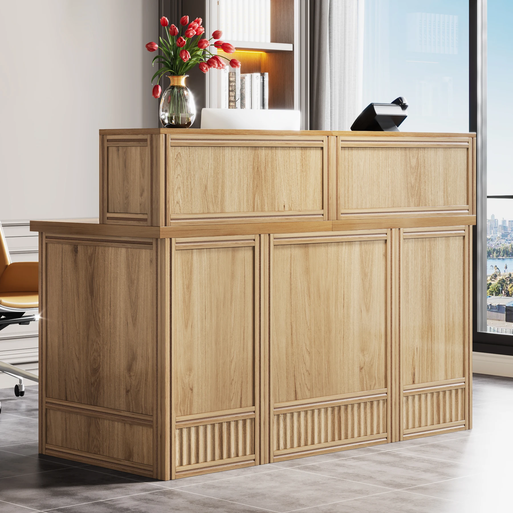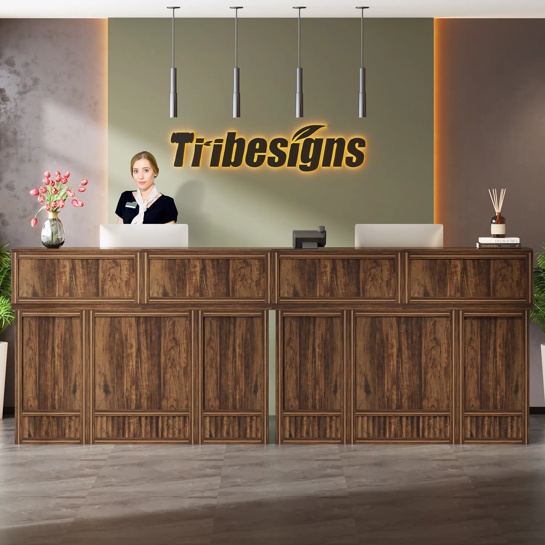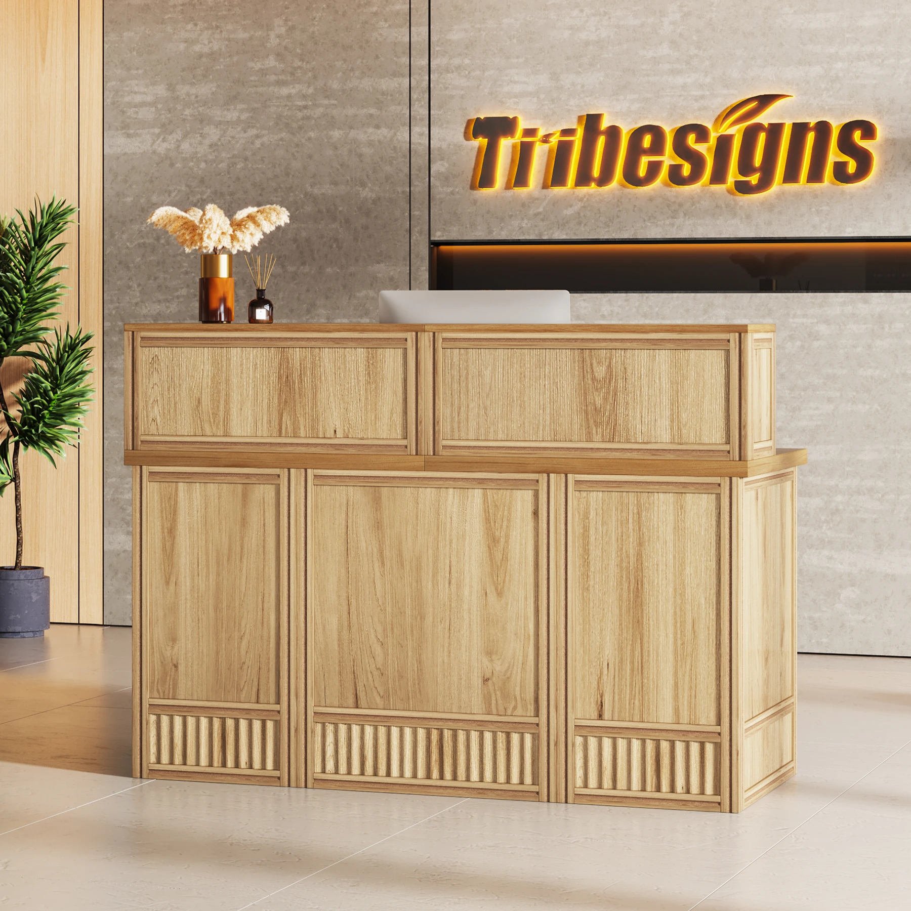 Versatile and Multi-Functional: Suitable for use as a company front desk, cash register counter, or salon front desk. It works well in offices, retail spaces, and beauty salon lobbies while helping create a professional and welcoming atmosphere.