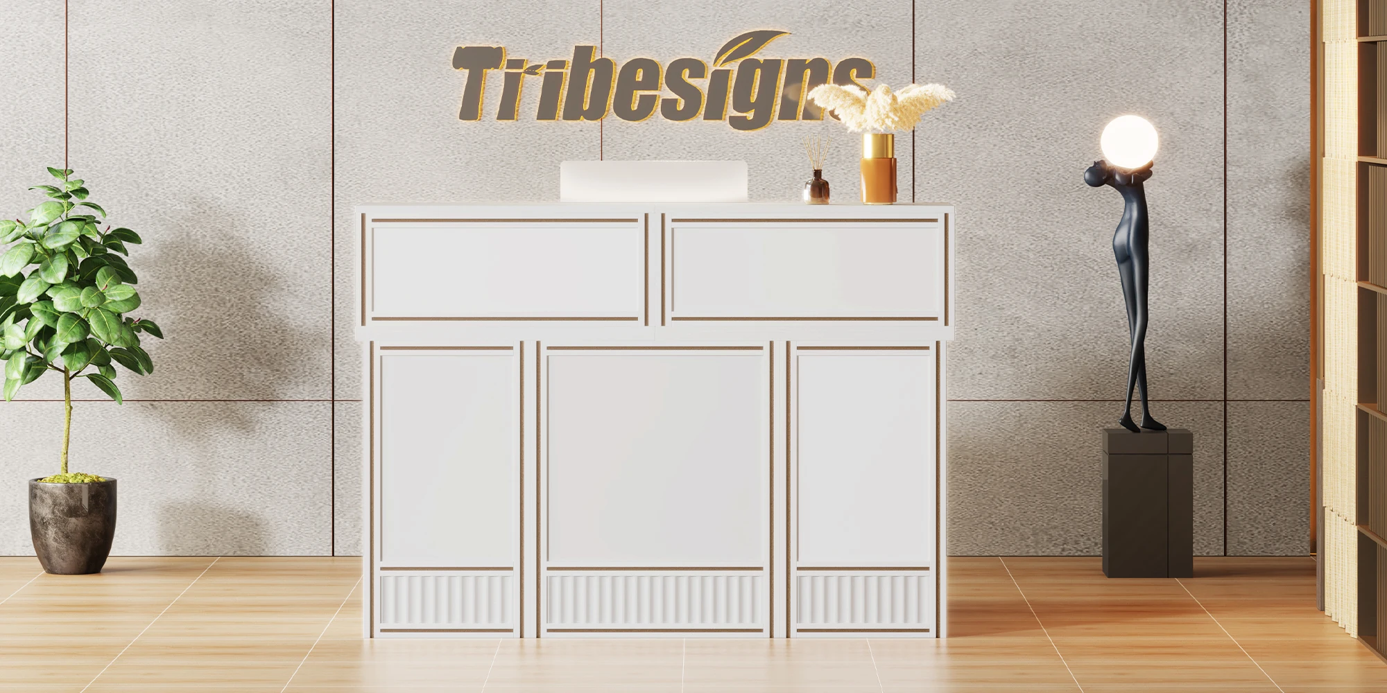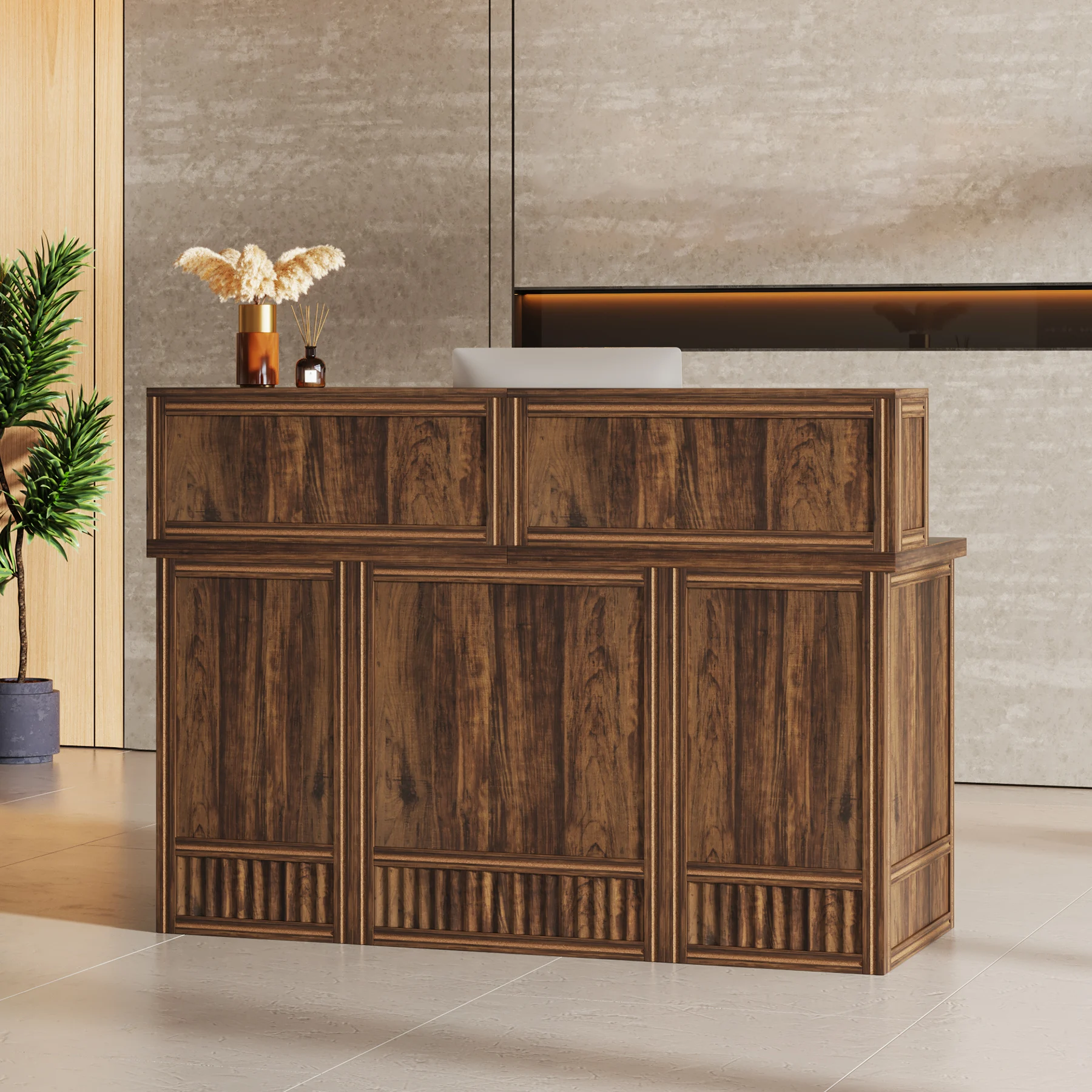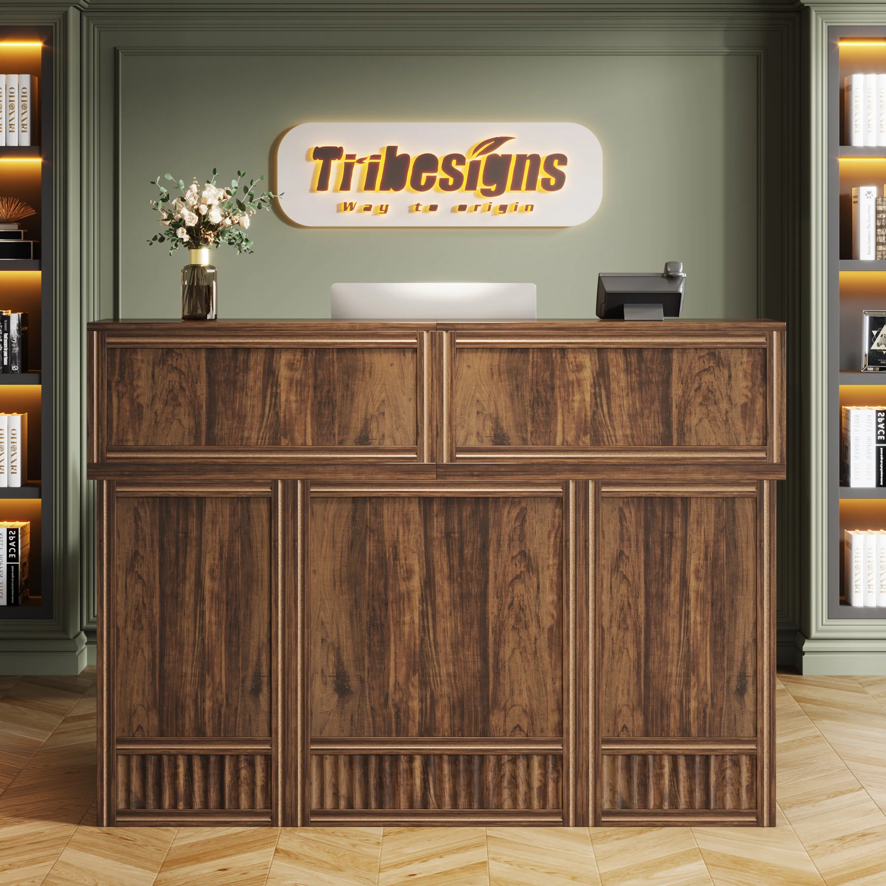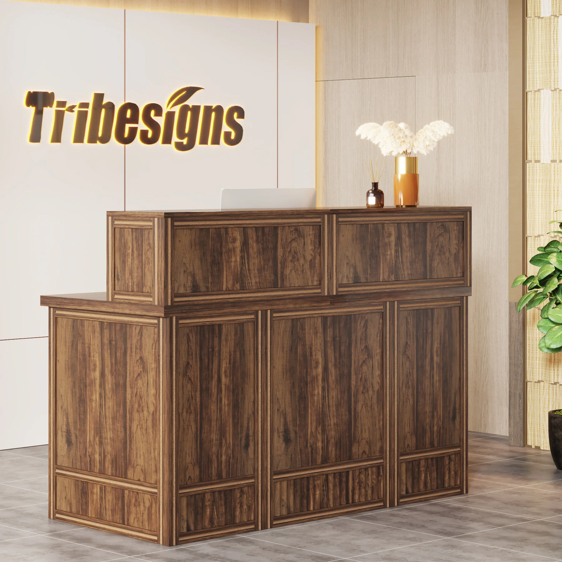 Versatile and Multi-Functional: Suitable for use as a company front desk, cash register counter, or salon front desk. It works well in offices, retail spaces, and beauty salon lobbies while helping create a professional and welcoming atmosphere.