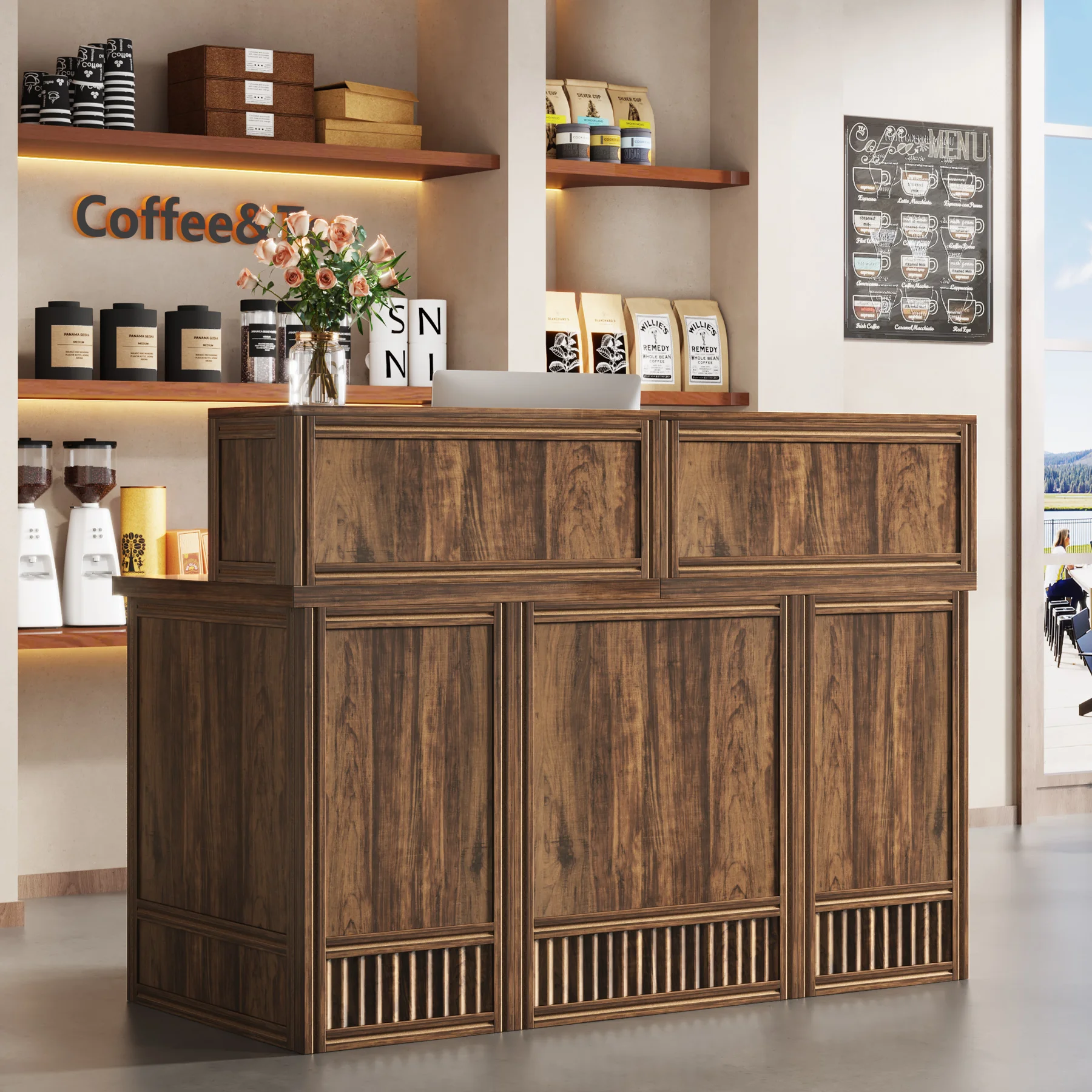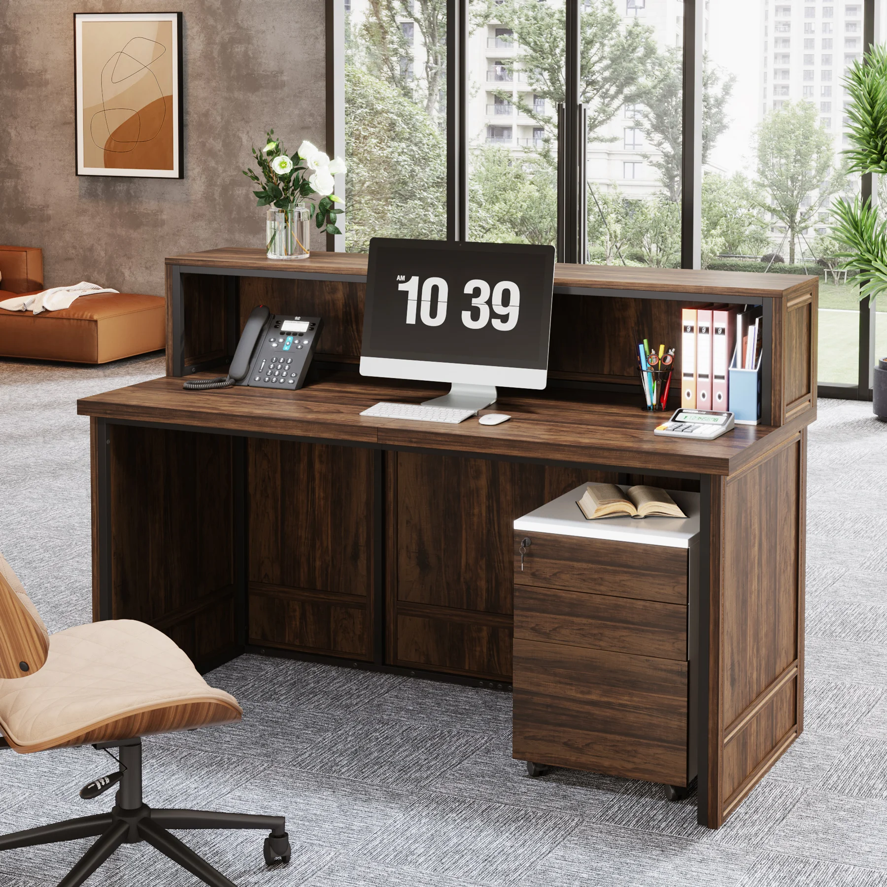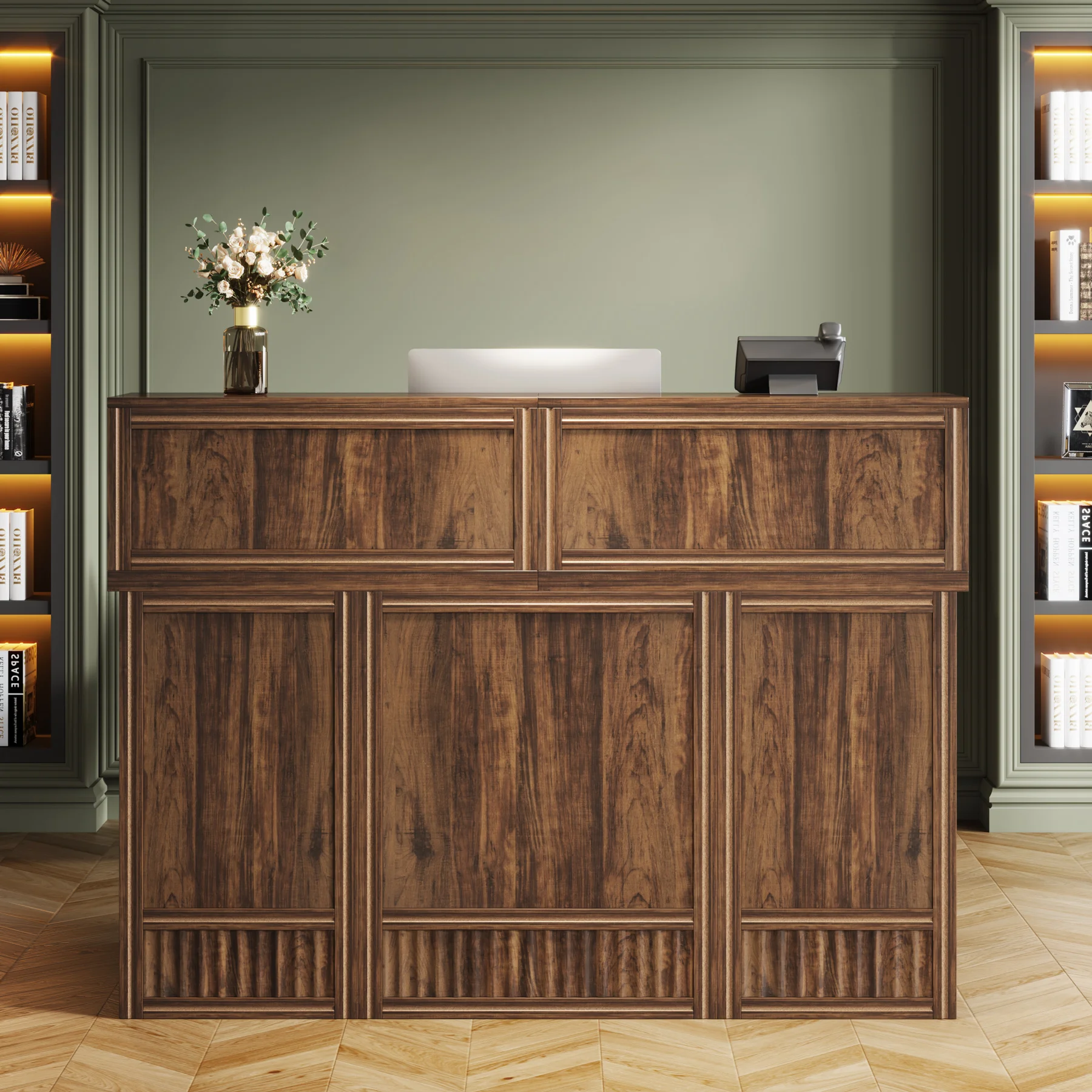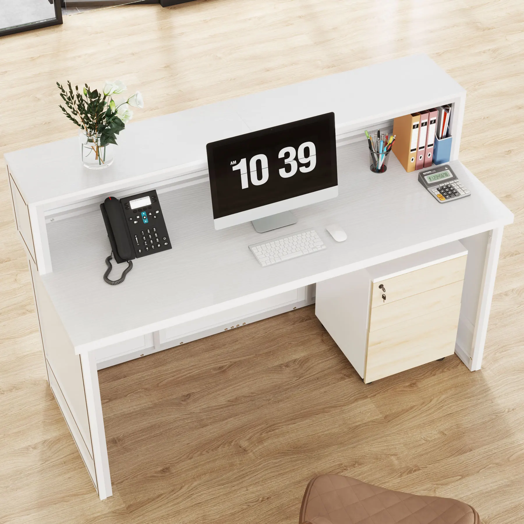 Versatile and Multi-Functional: Suitable for use as a company front desk, cash register counter, or salon front desk. It works well in offices, retail spaces, and beauty salon lobbies while helping create a professional and welcoming atmosphere.