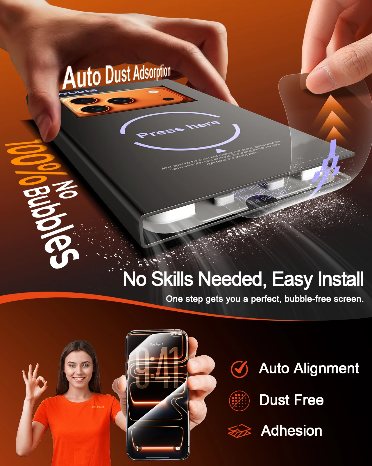 The dust-free frame helps make installation quick and easy. The design supports bubble-free placement in just two steps and helps align the protector properly, even for first-time users.