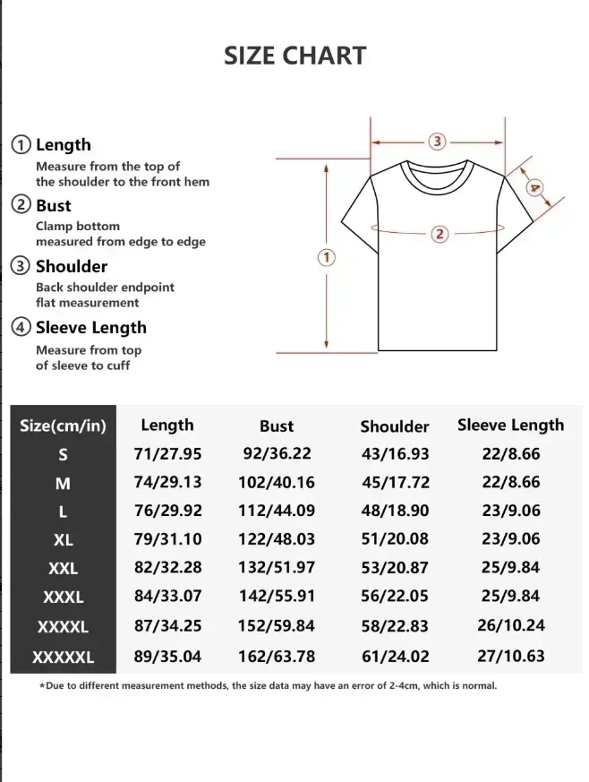 XXXL: Length 84/33.07, Bust 142/55.91, Shoulder 56/22.05, Sleeve 25/9.84