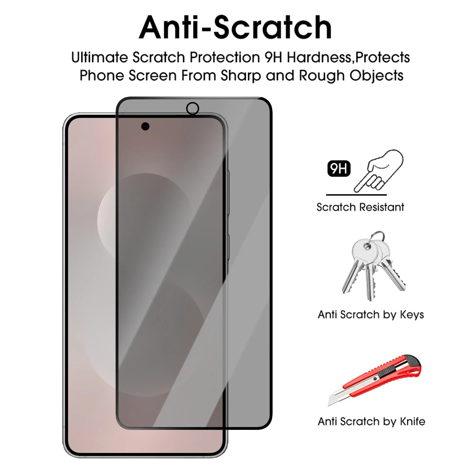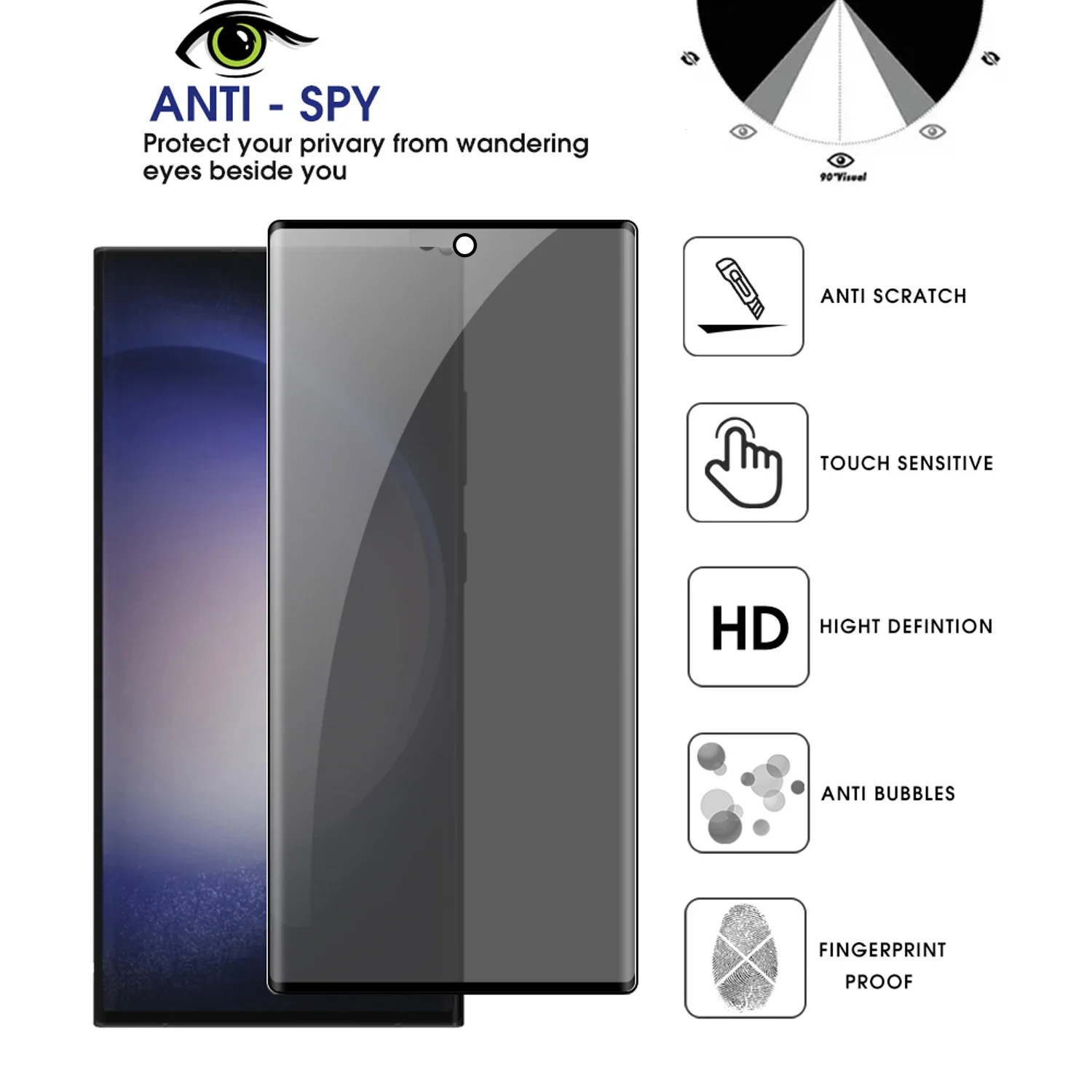 Description: This black privacy tempered glass screen protector for the Samsung S series is designed to help keep your screen content visible only to you. The privacy design reduces side viewing, helping protect personal information in public settings.