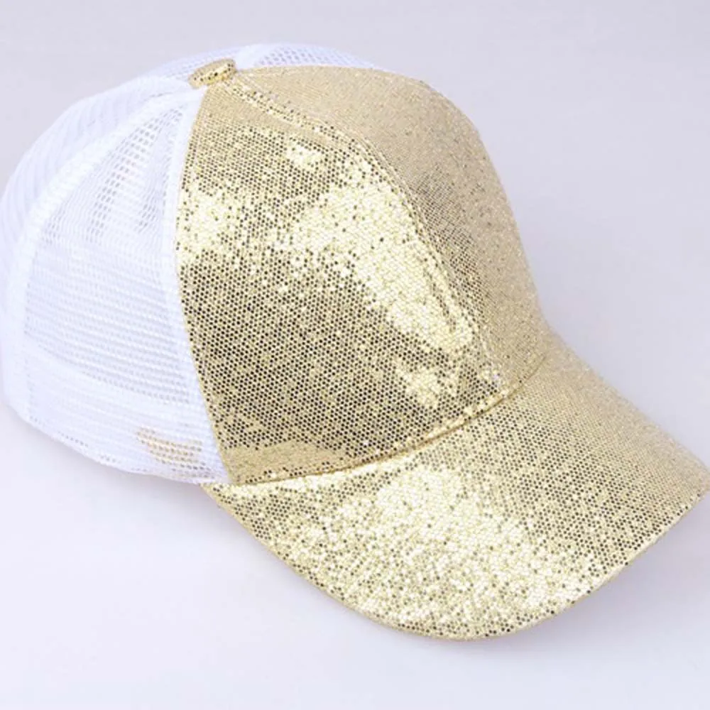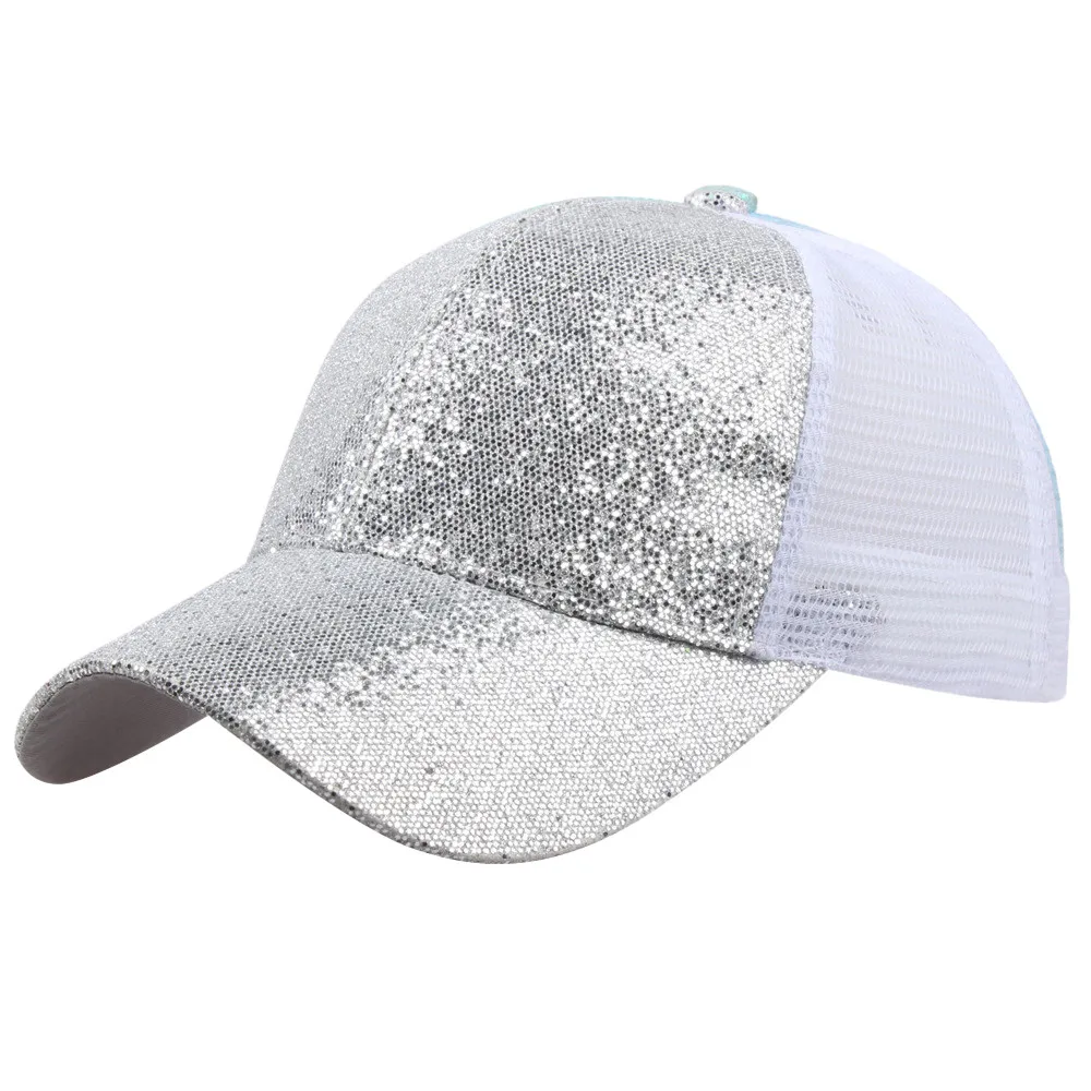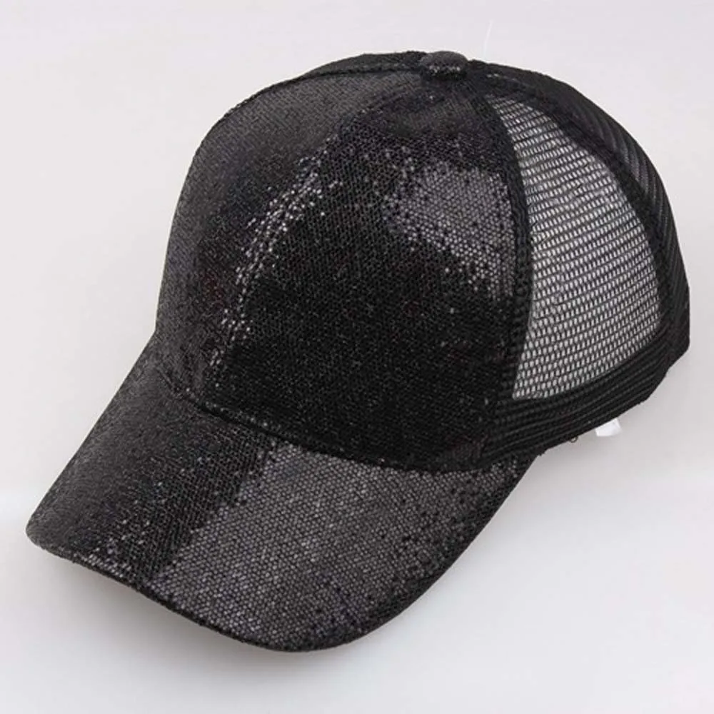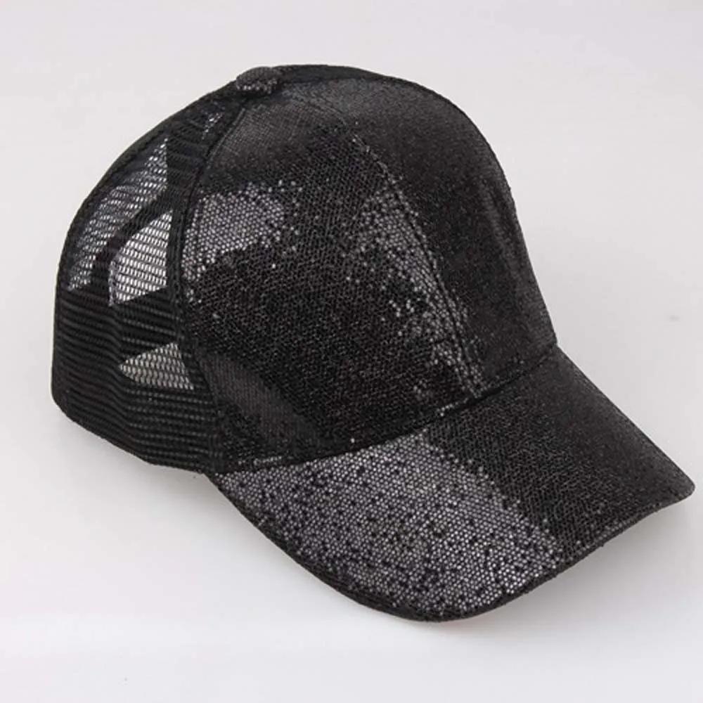 - Package: 1PC Women Ponytail Baseball Cap Sequins Shiny Messy Bun Snapback Hat Sun Caps