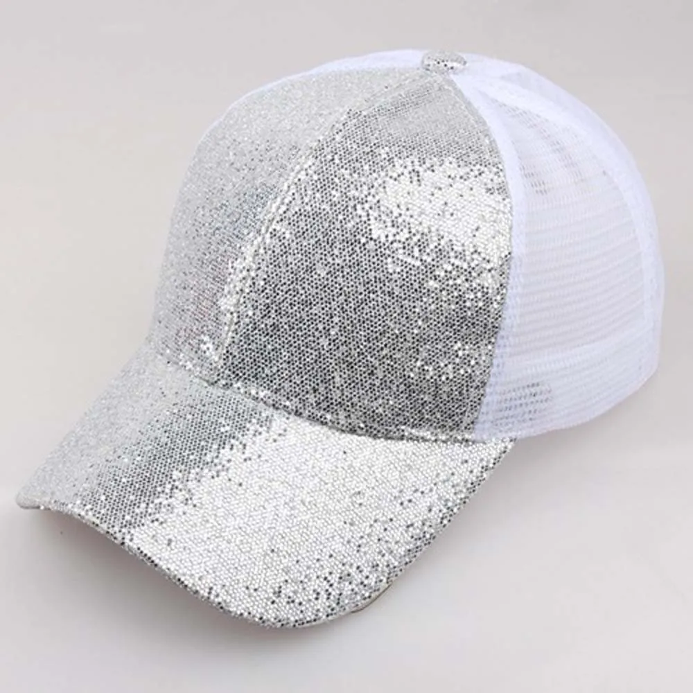 Sequin Sparkle Ponytail Baseball Cap: Sun Protection