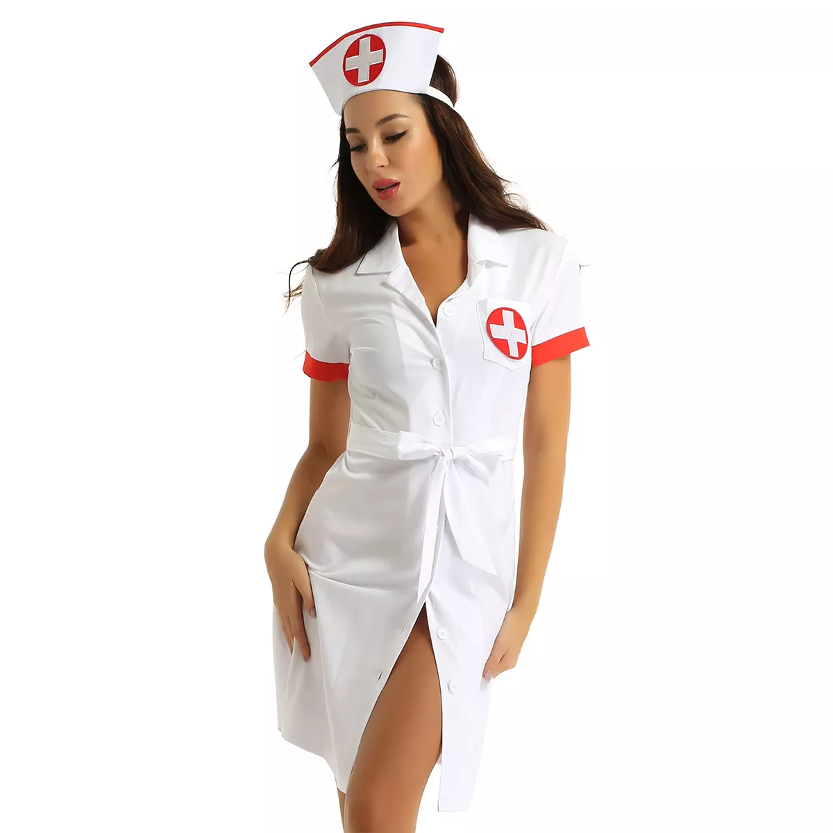 Sexy Nurse Roleplay Costume with Hat & Belt