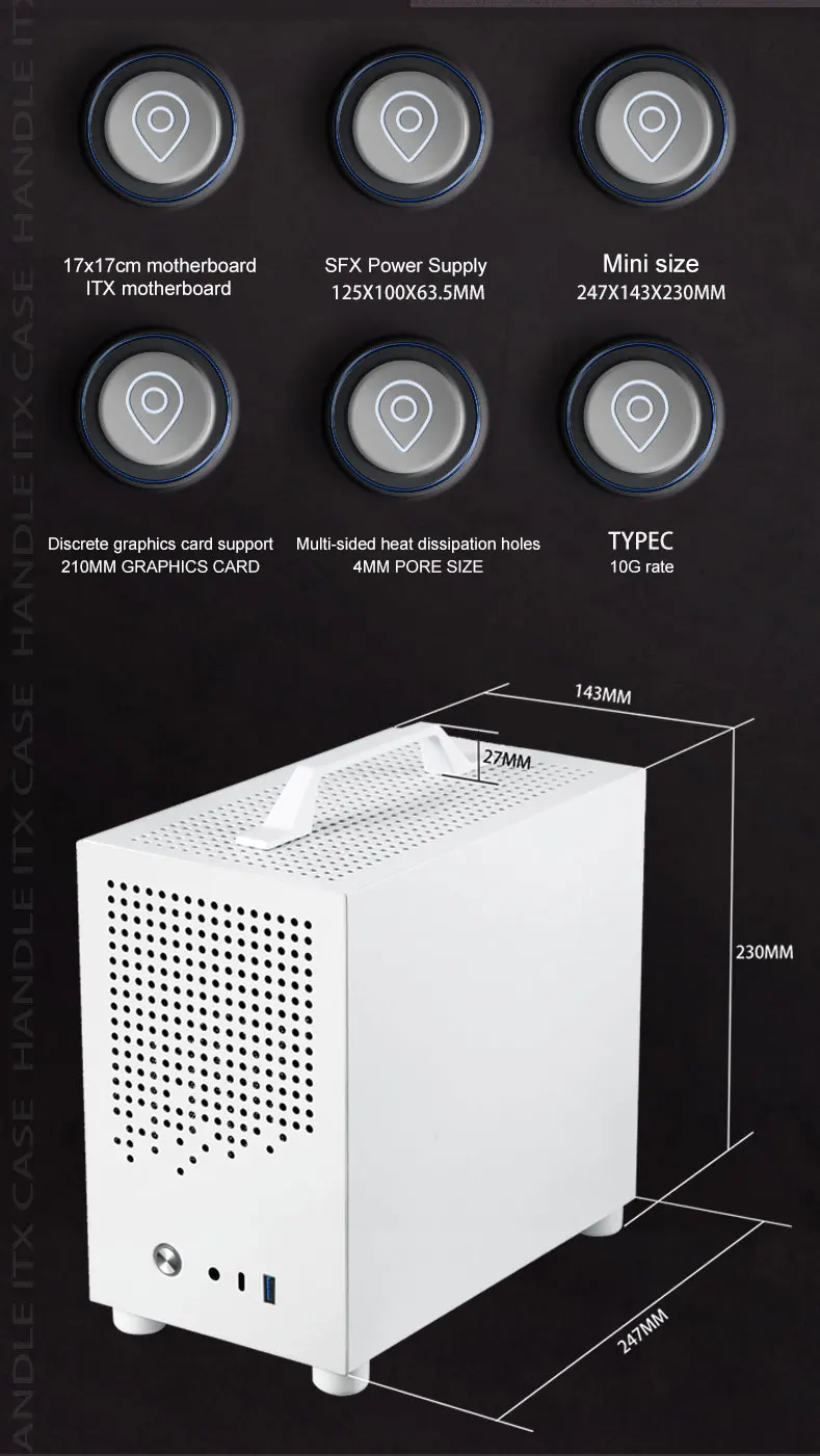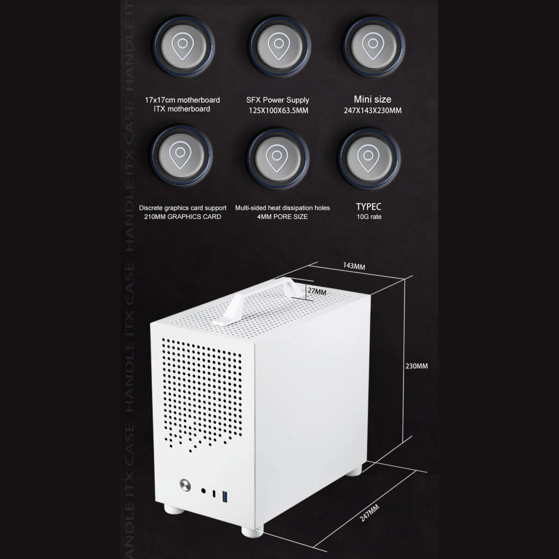 Experience the perfect blend of form and function with this Portable Desktop Mini ITX Computer Case, ideal for creating a powerful yet compact PC setup. Whether you’re building a home office workstation or a gaming rig, this small form factor (SFF) case offers a space-saving design without compromising on performance.