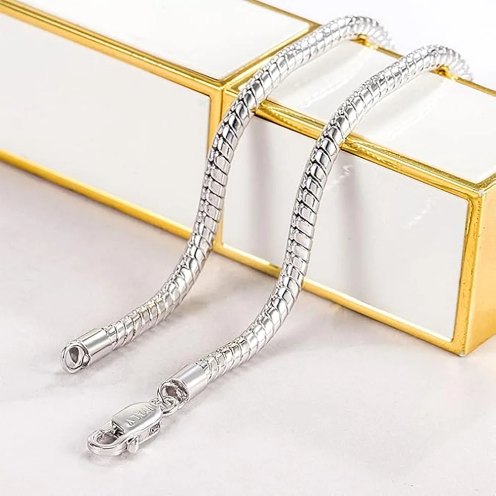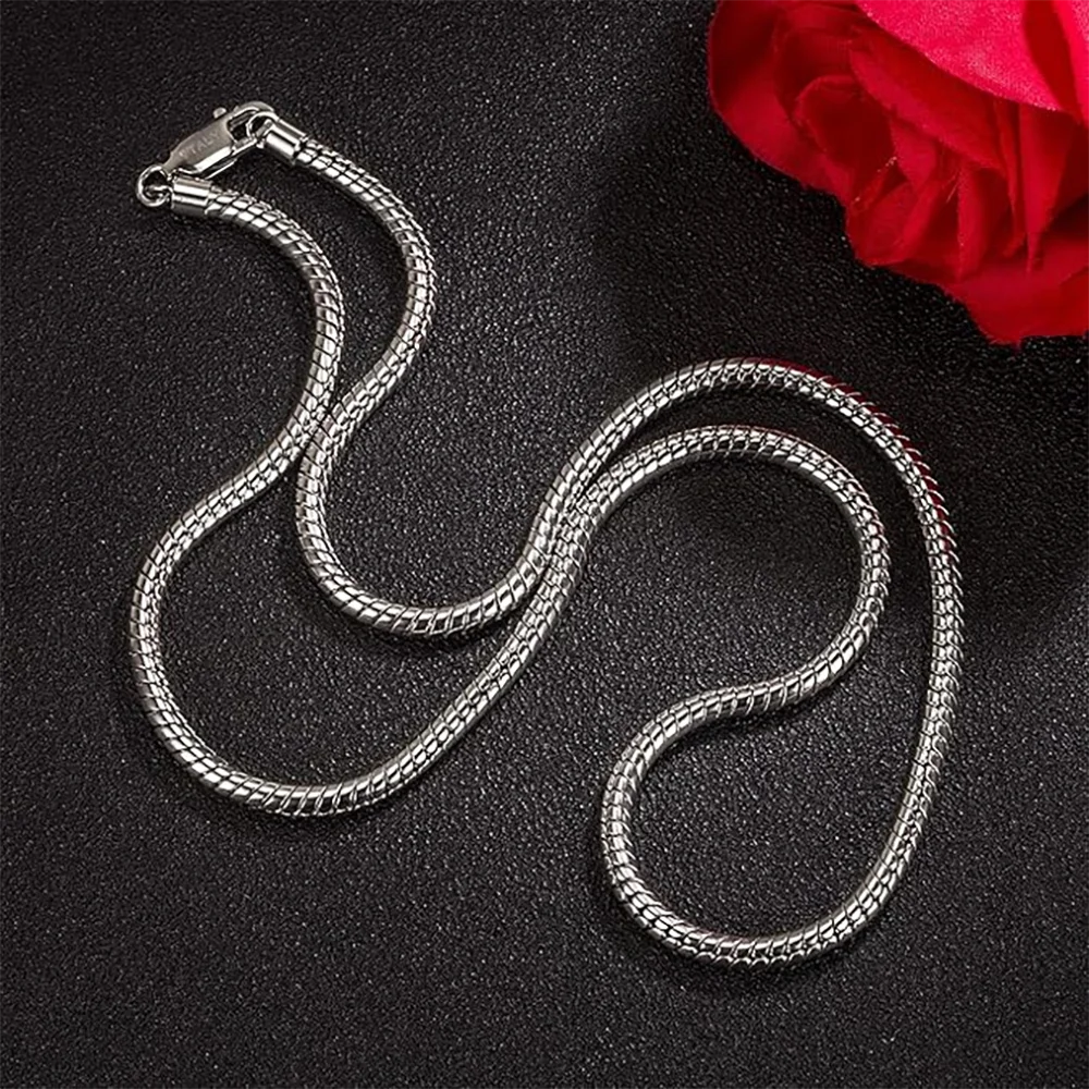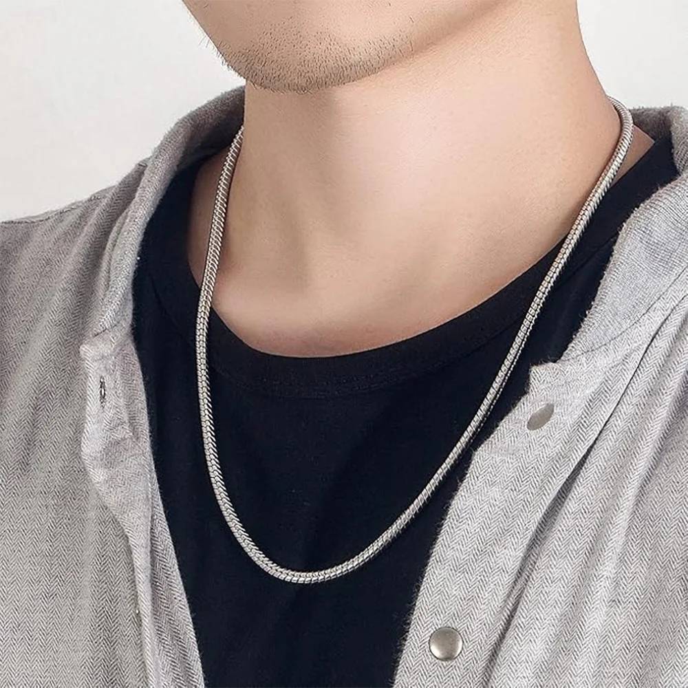 Add effortless shine to your jewelry collection with this 925 sterling silver snake chain necklace. Featuring a sleek and flexible design, it drapes beautifully on the neckline and suits both casual and formal looks. This minimalist yet bold piece is ideal for men or women who love clean, timeless accessories.