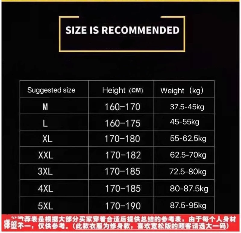 | Model Number | M / L / XL / 2XL / 3XL / 4XL / 5XL |