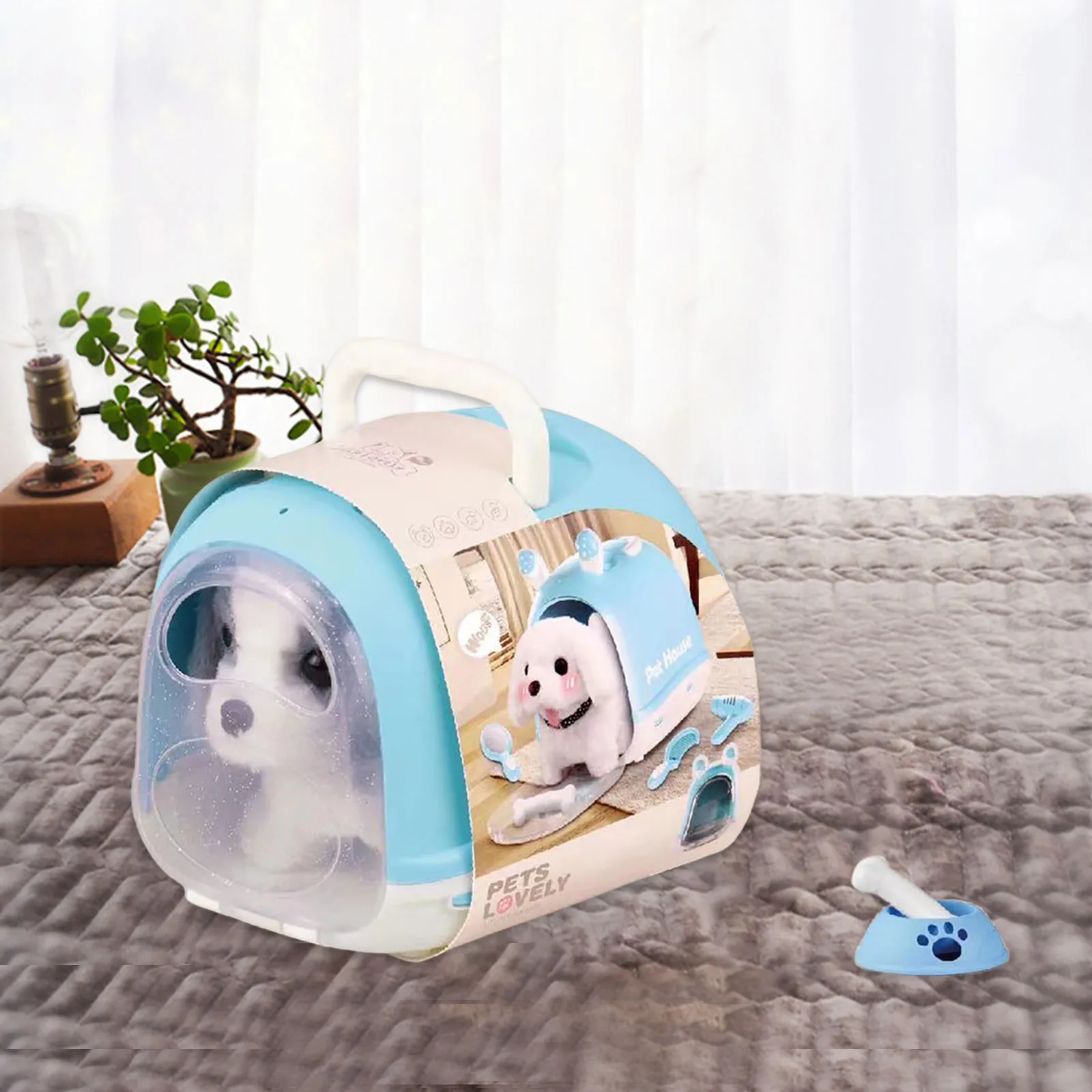 Perfect for early learning, this pet care toy set comes with a small plush white dog for grooming activities, a puppy, and feeding accessories, all designed to educate and entertain young children.