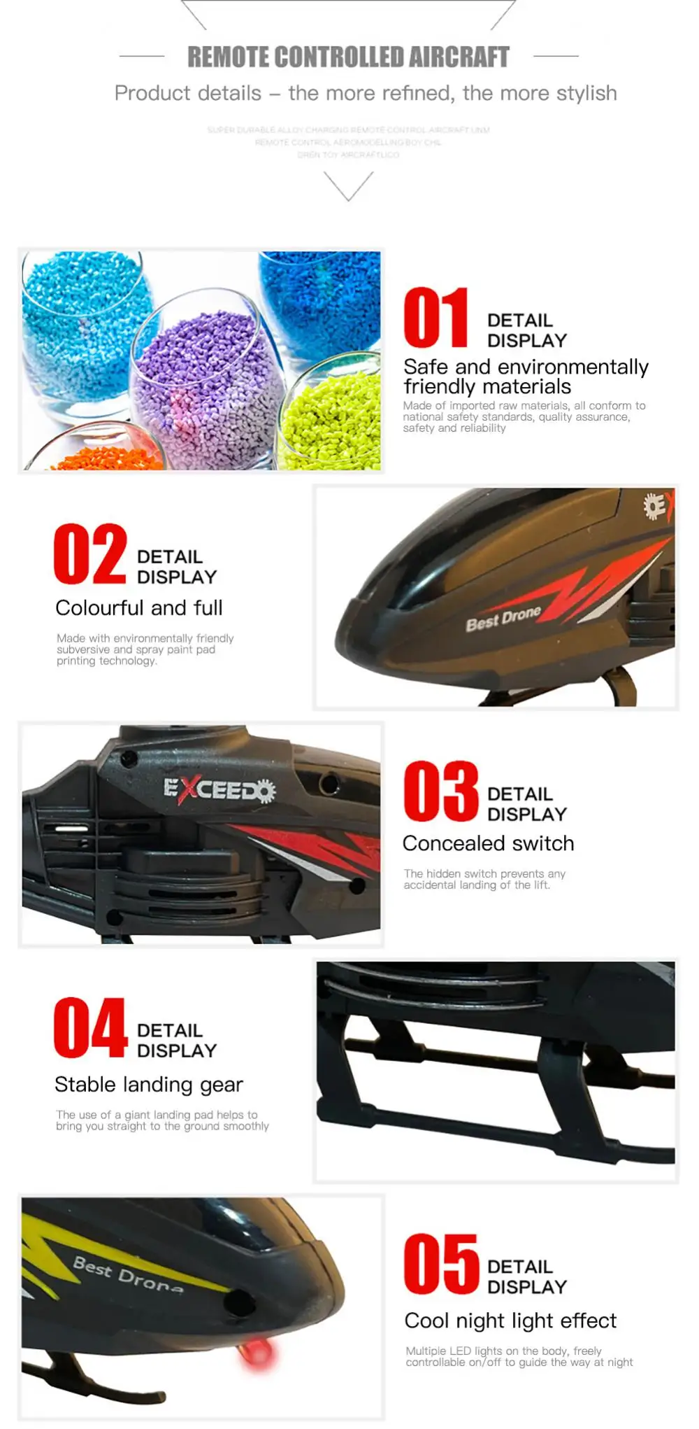 Strong Safety: This product is designed with children’s safety in mind, ensuring it poses no harm. It features a coaxial double propeller design that automatically powers off in case of obstruction. Moreover, the wings are crafted from durable plastic material.