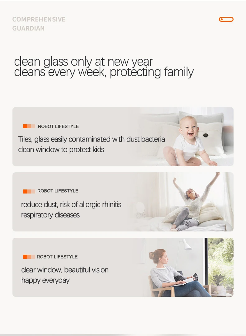 Experience the next level of home cleaning with our innovative window cleaning robot. This compact and lightweight device revolutionizes your cleaning routine by bringing smart technology right to your glass windows. Forget the hassle of manual scrubbing and let our robotic cleaner do the hard work for you.