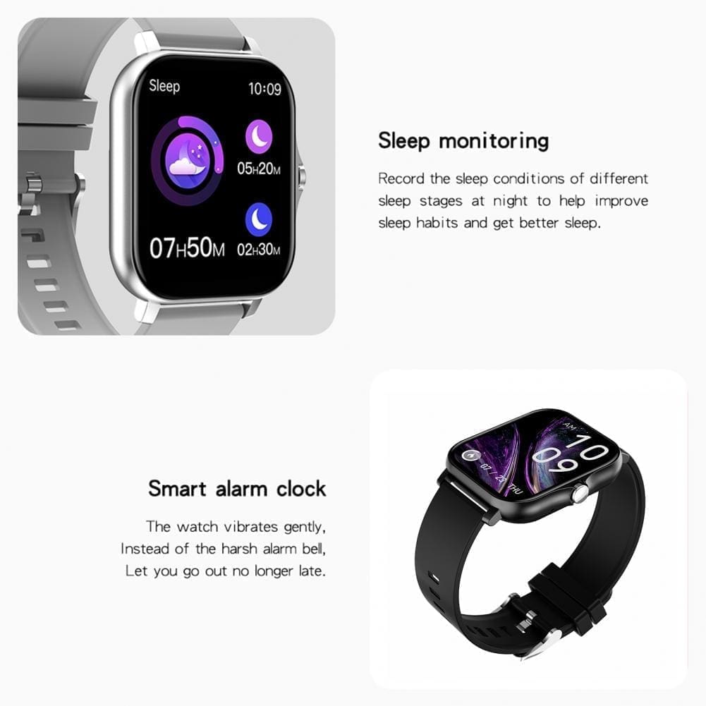Equipped with a 1.69-inch large screen, the smartwatch offers convenience in displaying the time. It features an intelligent design with multiple functions, including weather forecasts, message notifications, hands-free calling, music control, and more.