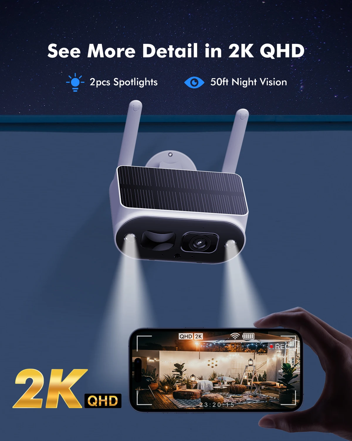 - 4MP Wifi connectivity with solar-powered panel