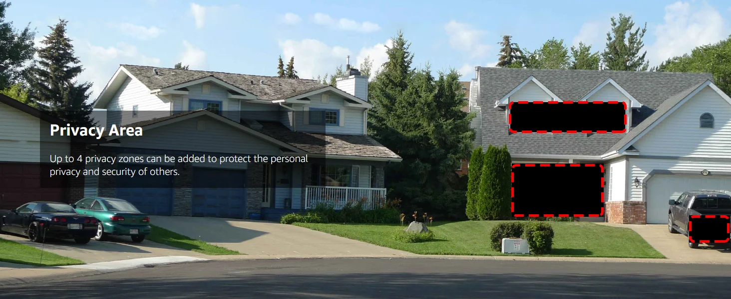 - 🕹 Privacy Area: Further improve alert accuracy. Up to four privacy zones can be established to protect personal privacy and security. Set up motion detection areas to reduce unnecessary alarm notifications.