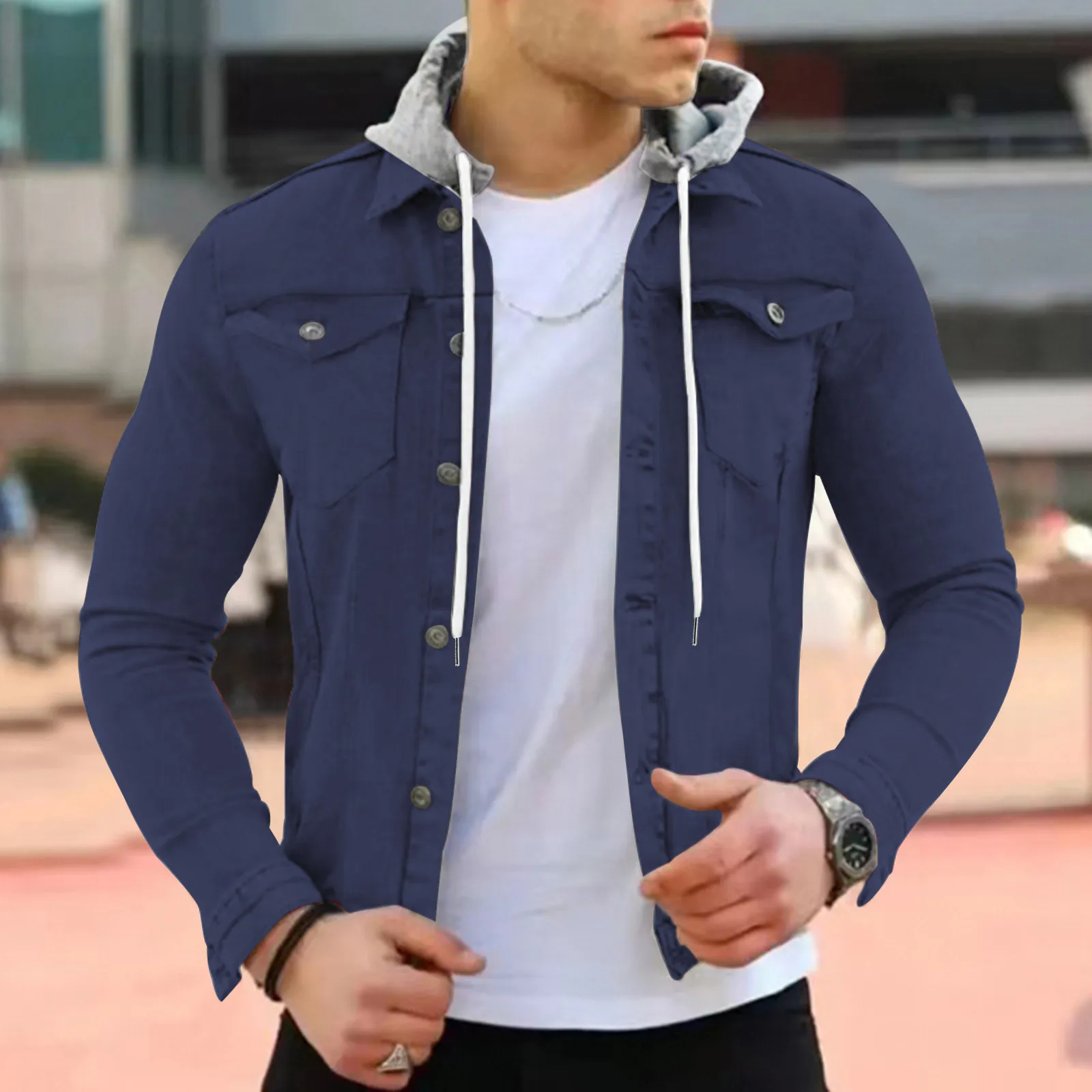 Solid Color Denim Jacket Slim Fit Casual Coat