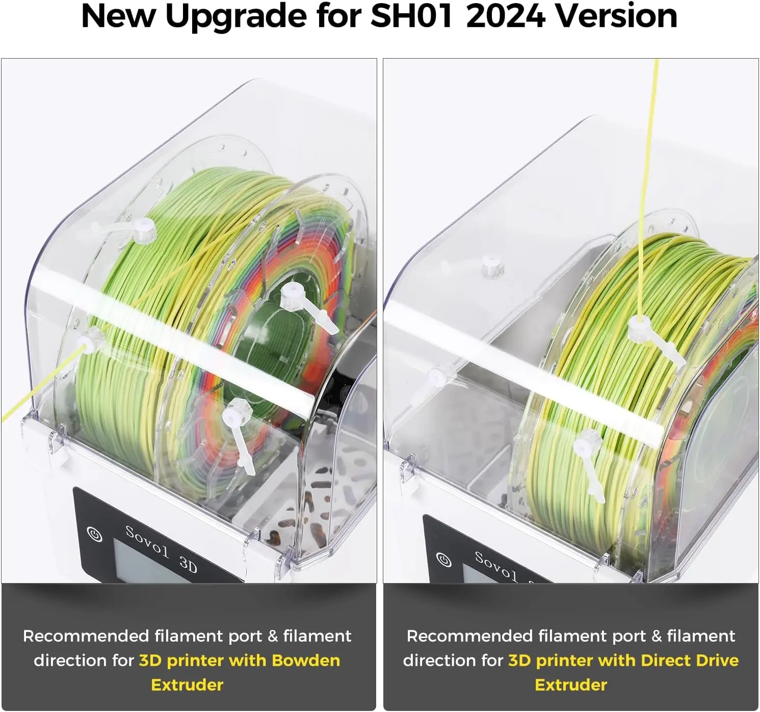 Remove Excess Moisture: 3D printer filaments are hygroscopic, and moisture can cause printing failure. The Sovol SH01, a great addition to your 3D printer, removes excess moisture, keeps your filament dry, and provides better prints. The surface of prints will be smoother, and layer adhesion will increase. No more brittle PLA, PETG, or ABS filament.