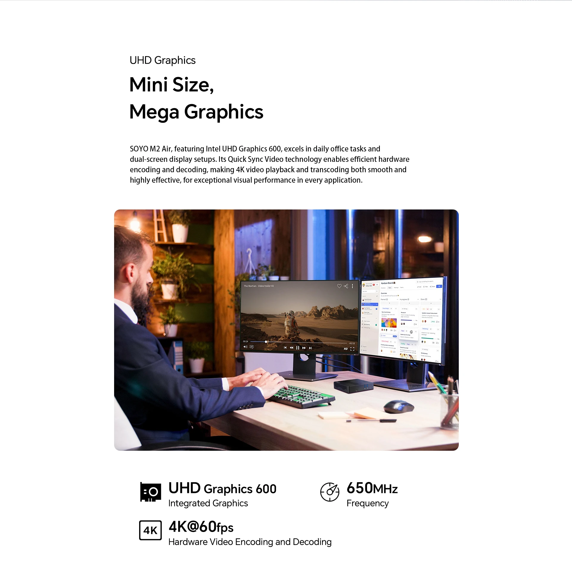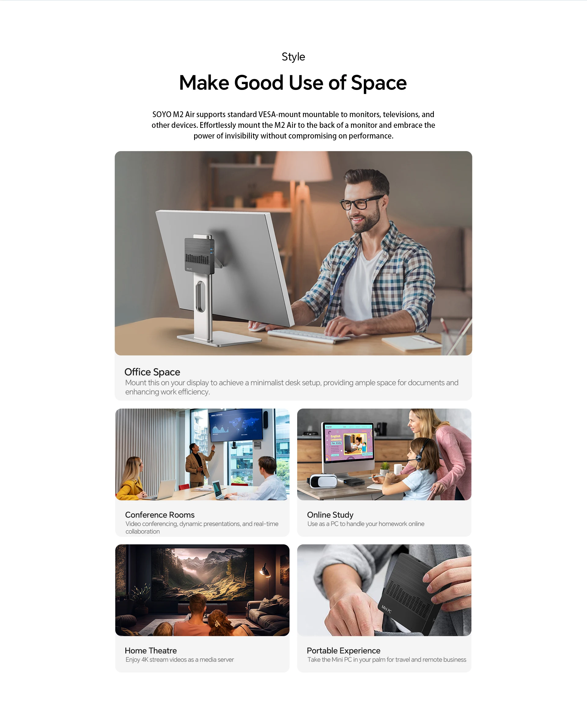 Upgrade your computing experience today with the SOYO M2 Air Mini PC – a powerful, space-efficient, and versatile device built for modern-day needs.