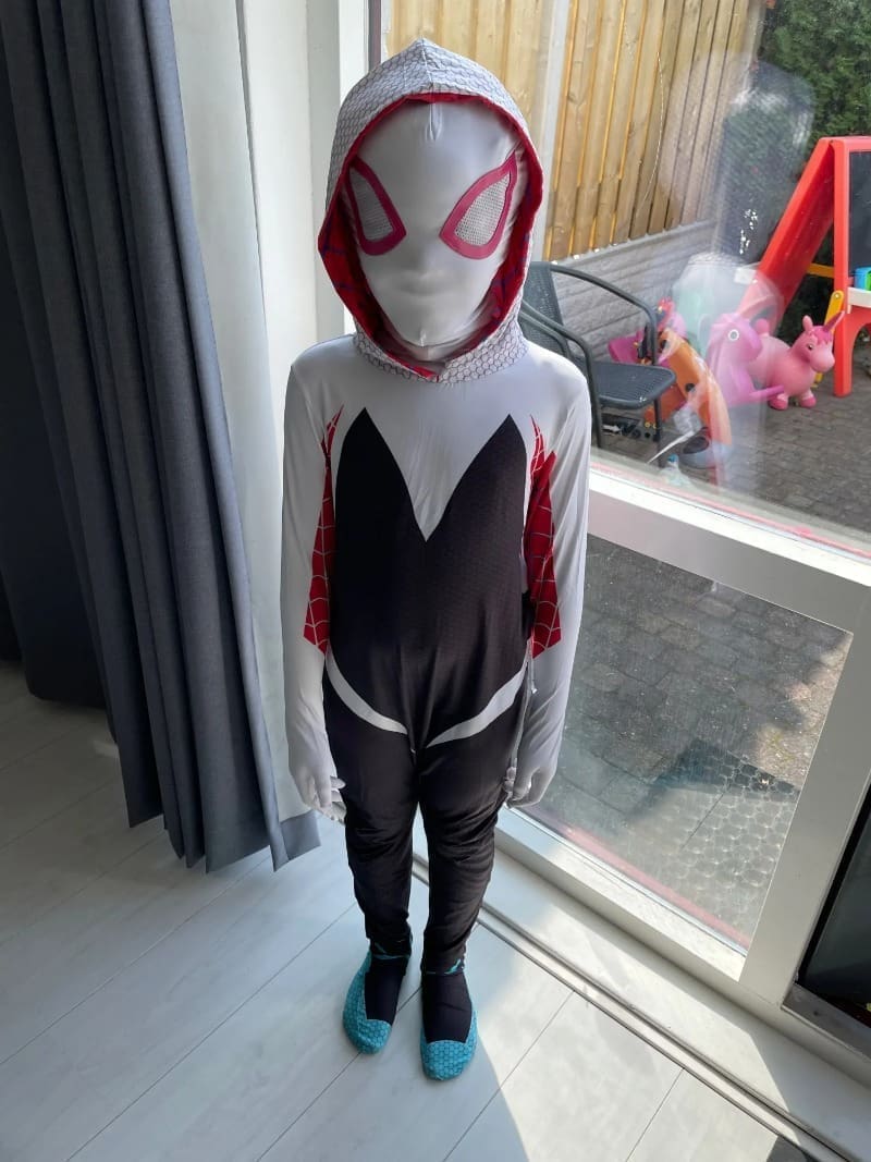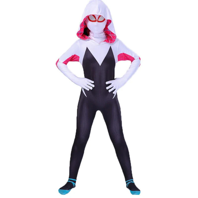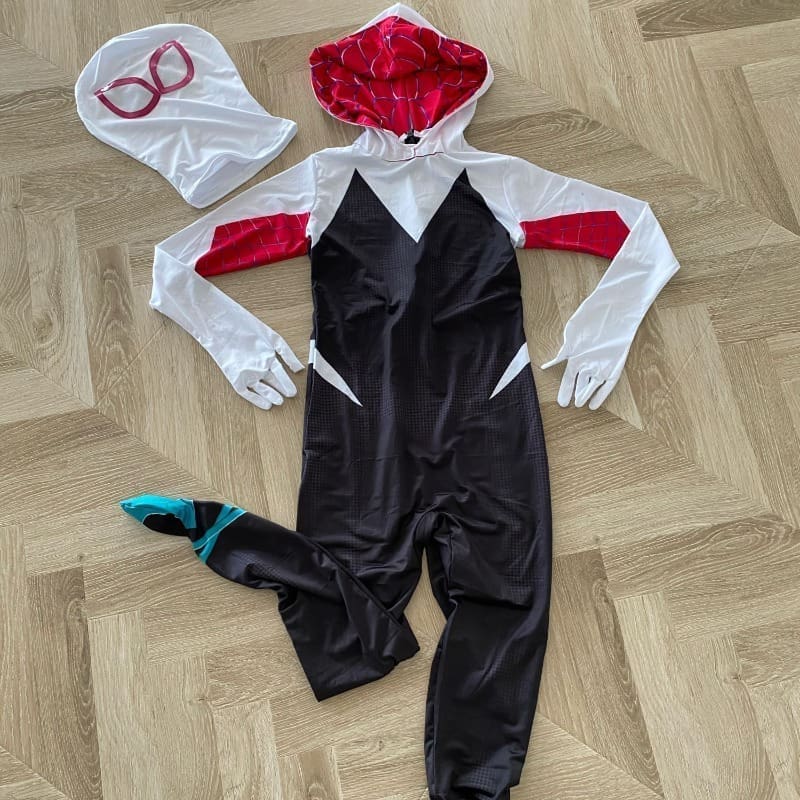 - Authentic Design: The costume replicates the unique look of Spider-Gwen, including her signature white, black, and pink color scheme. The hooded design adds a mysterious touch, just like in the comics and movies.