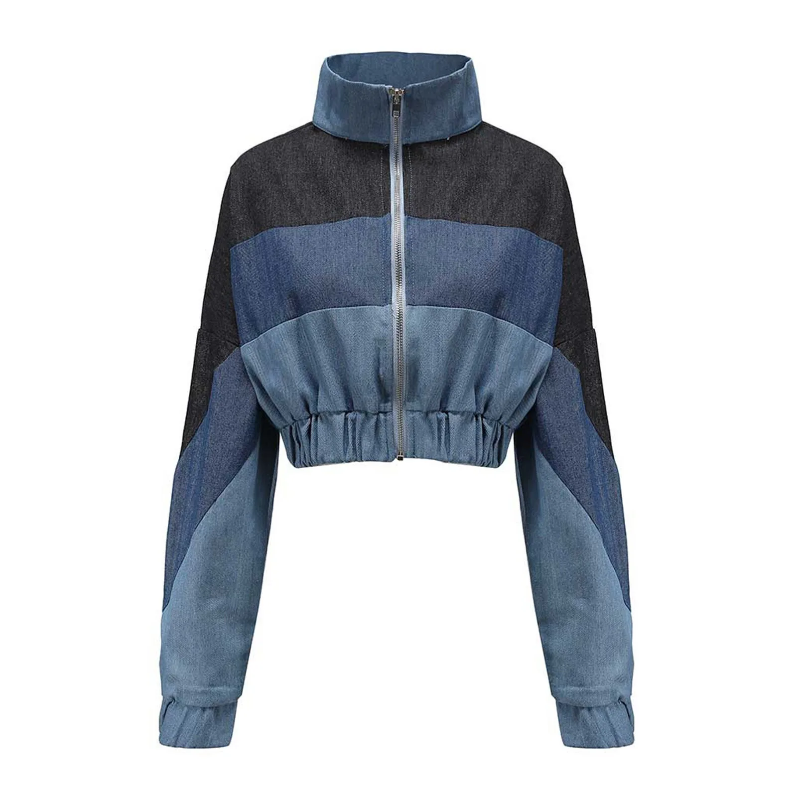 - Features denim, zipper, lapel, and long sleeves for a distinctive style.