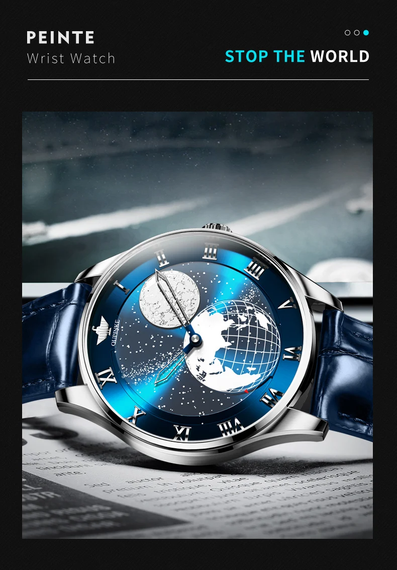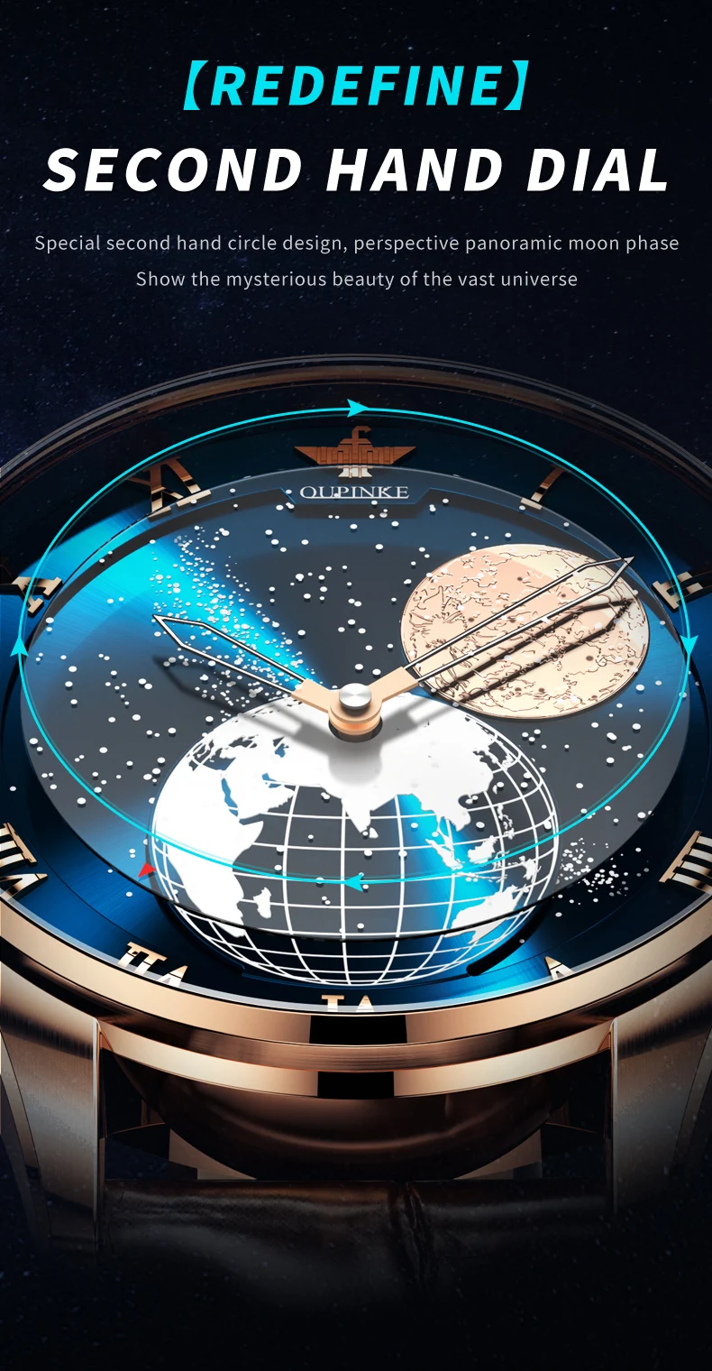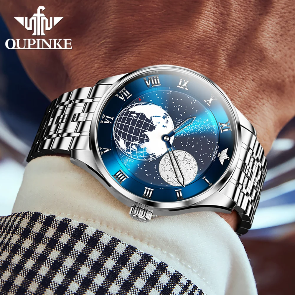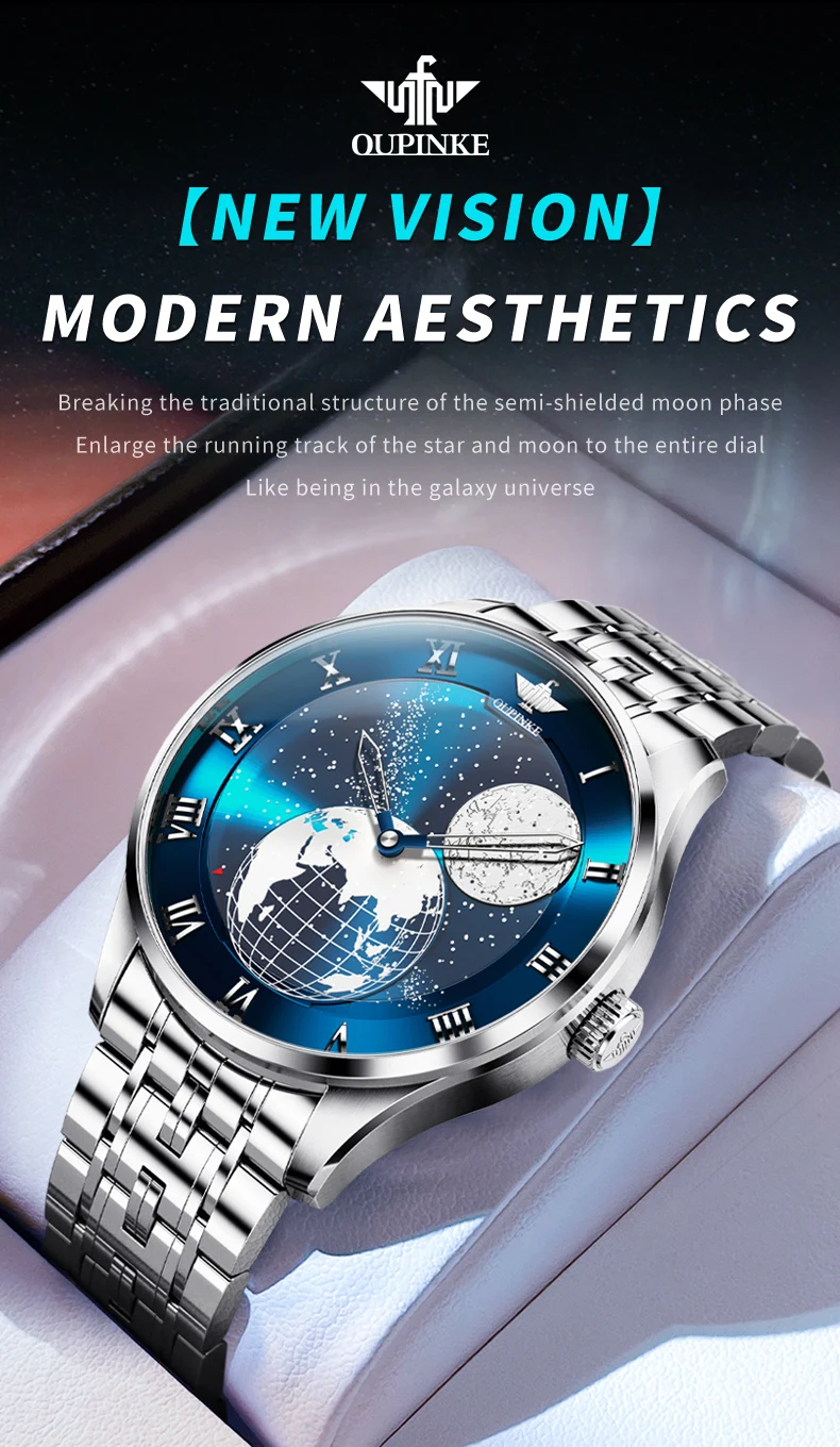 Discover the epitome of elegance and precision with the OUPINKE Automatic Mechanical Men’s Watch, a masterpiece that seamlessly blends innovative design with timeless luxury. This exquisite timepiece features a captivating 3D Earth starry sky rotating dial, offering a unique glimpse into the cosmos from your wrist. Powered by a sophisticated Japanese movement, this watch ensures impeccable timekeeping and durability.