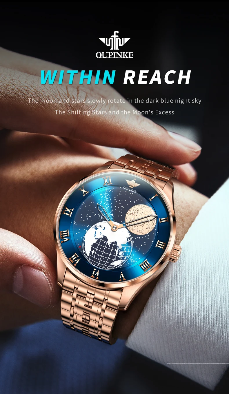 Elevate your watch collection with this stunning representation of craftsmanship and elegance. The OUPINKE watch is more than an accessory; it’s a testament to the art of watchmaking, designed to inspire awe and admiration.